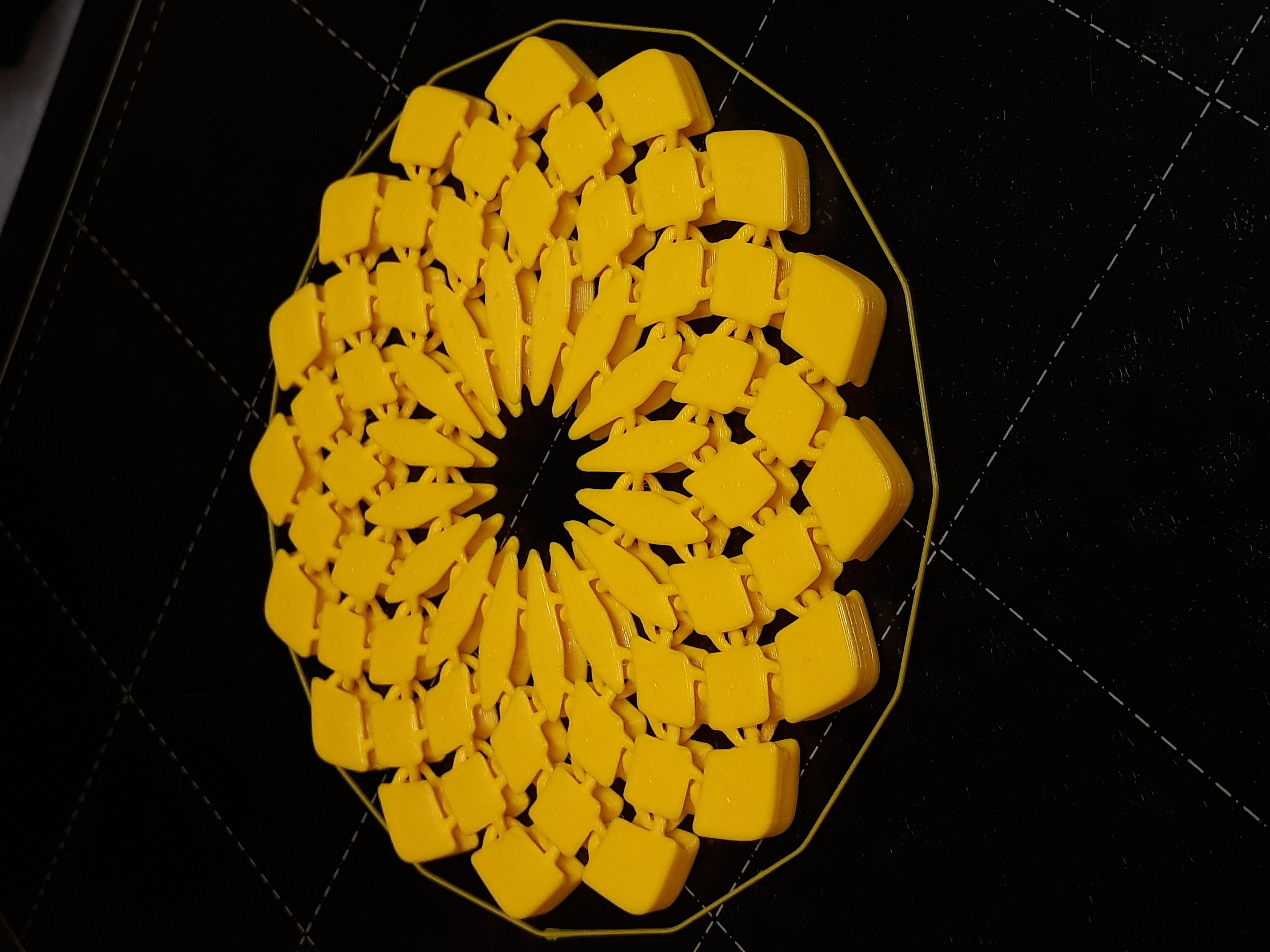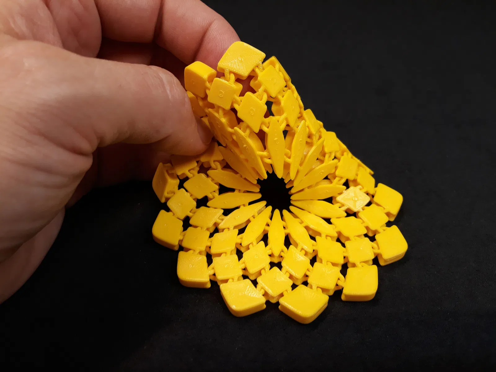 Một chiếc đế lót ly bằng vải hình tròn, lấy cảm hứng từ cách xếp hạt hướng dương. Mẫu này siêu dẻo và có thể chơi vui tay. Không cần support khi in, chỉ cần lưu ý vài mẹo nhỏ để có kết quả tốt nhất. Có cả mẫu holder và các kích thước lớn hơn.