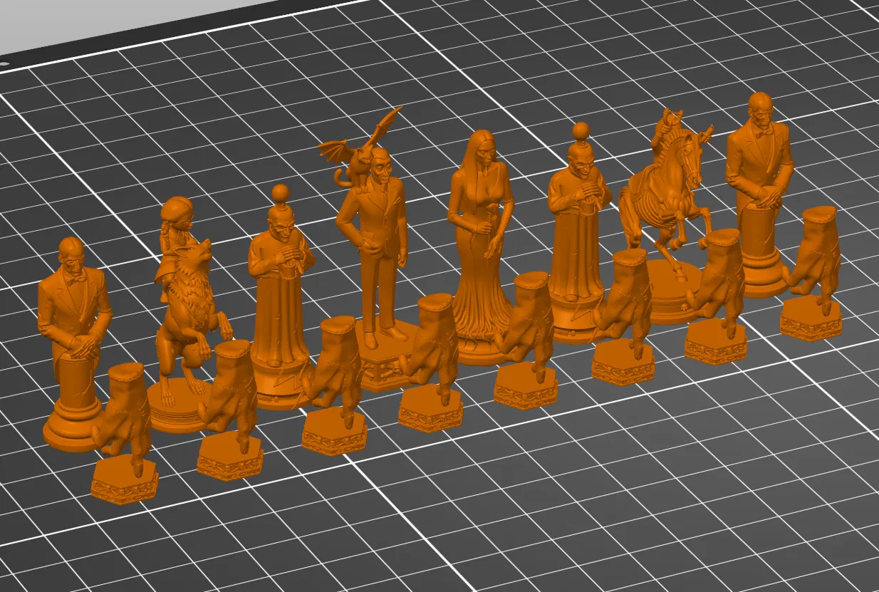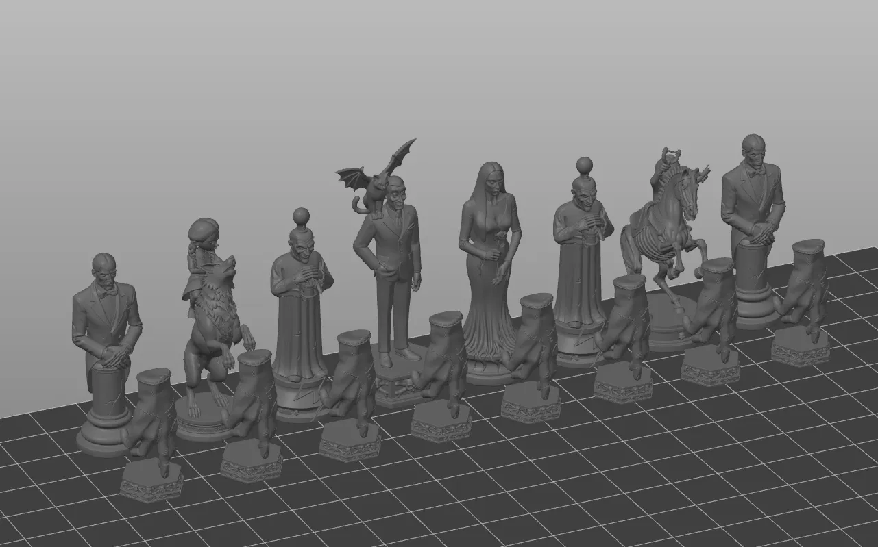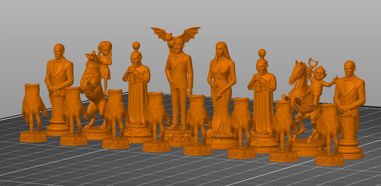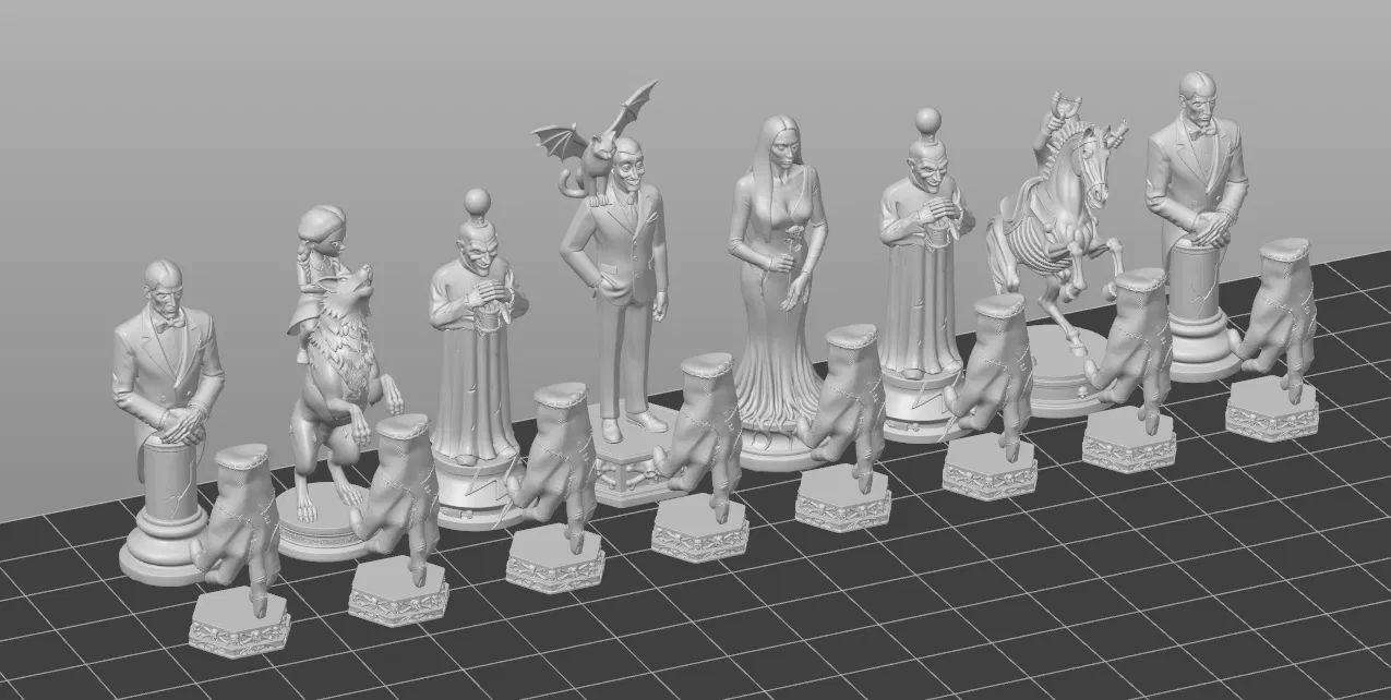 Bước vào nét quyến rũ rợn người của biệt thự Addams với bộ STL cờ vua gia đình Addams có thể in 3D này.