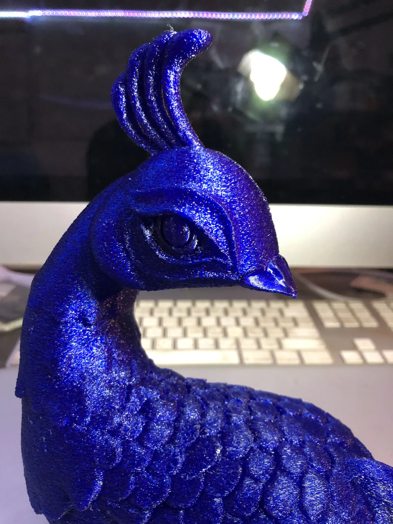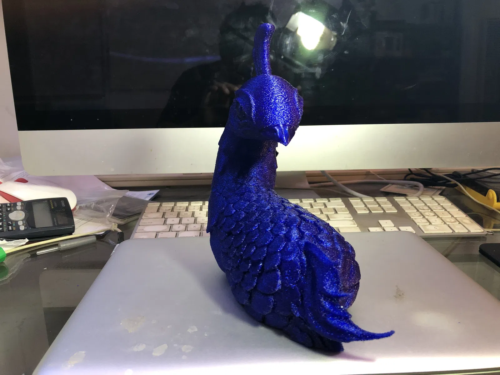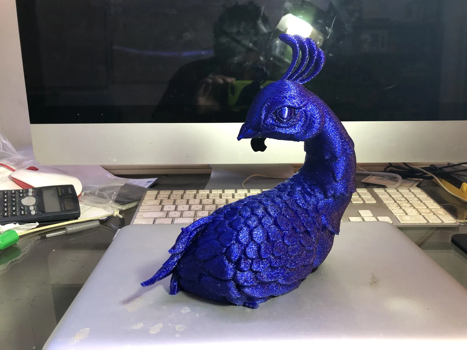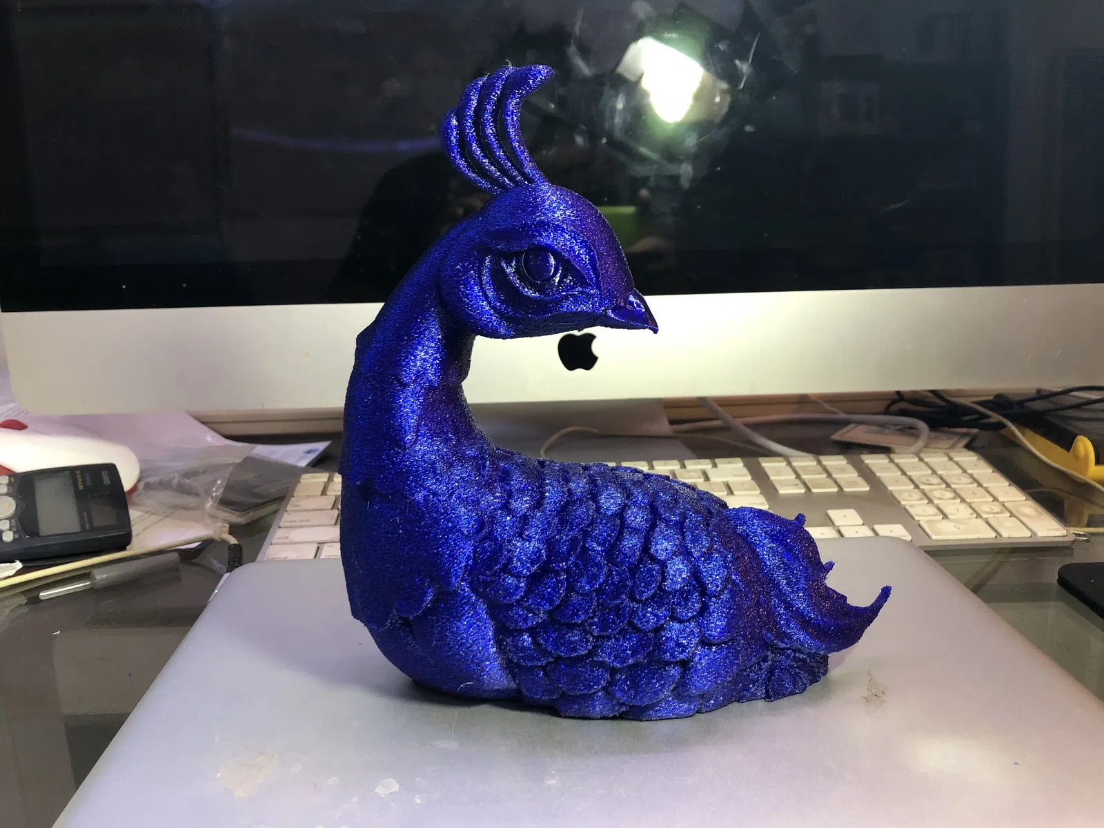 Mô hình con công dùng làm đế bánh hoặc đồ trang trí bàn. Bản in này đã được điều chỉnh kích thước và cắt nhỏ để phù hợp với máy in và giảm thiểu việc dọn dẹp hỗ trợ.