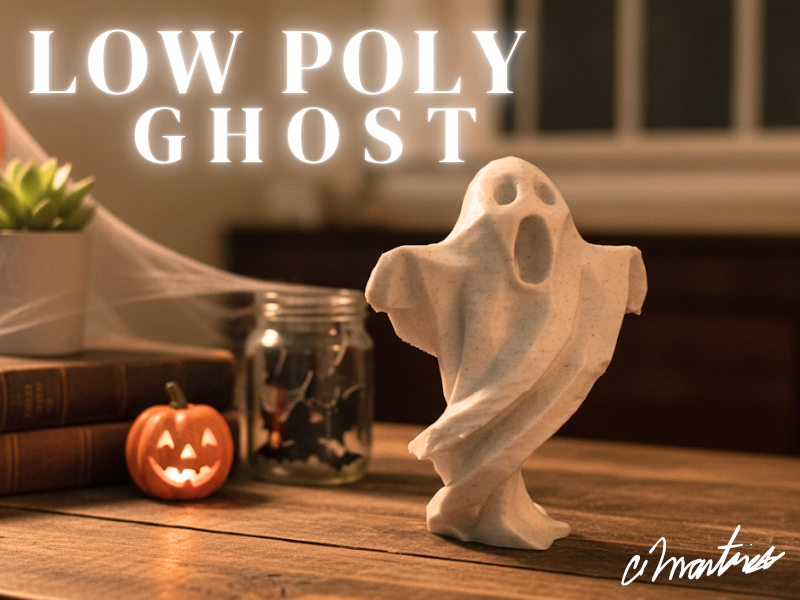 Một mẫu thiết kế theo phong cách low-poly, tạo hình một hồn ma mỏng manh, ma quái. Mô hình này có các mặt phẳng sắc nét, rõ ràng, mang lại cho hình dáng hồn ma cổ điển một nét chấm phá hình học hiện đại. Nó được thiết kế để thể hiện cảm giác chuyển động đầy kịch tính, với phần chân thon nhọn, xoáy tròn và khuôn miệng đang gào thét đầy biểu cảm.