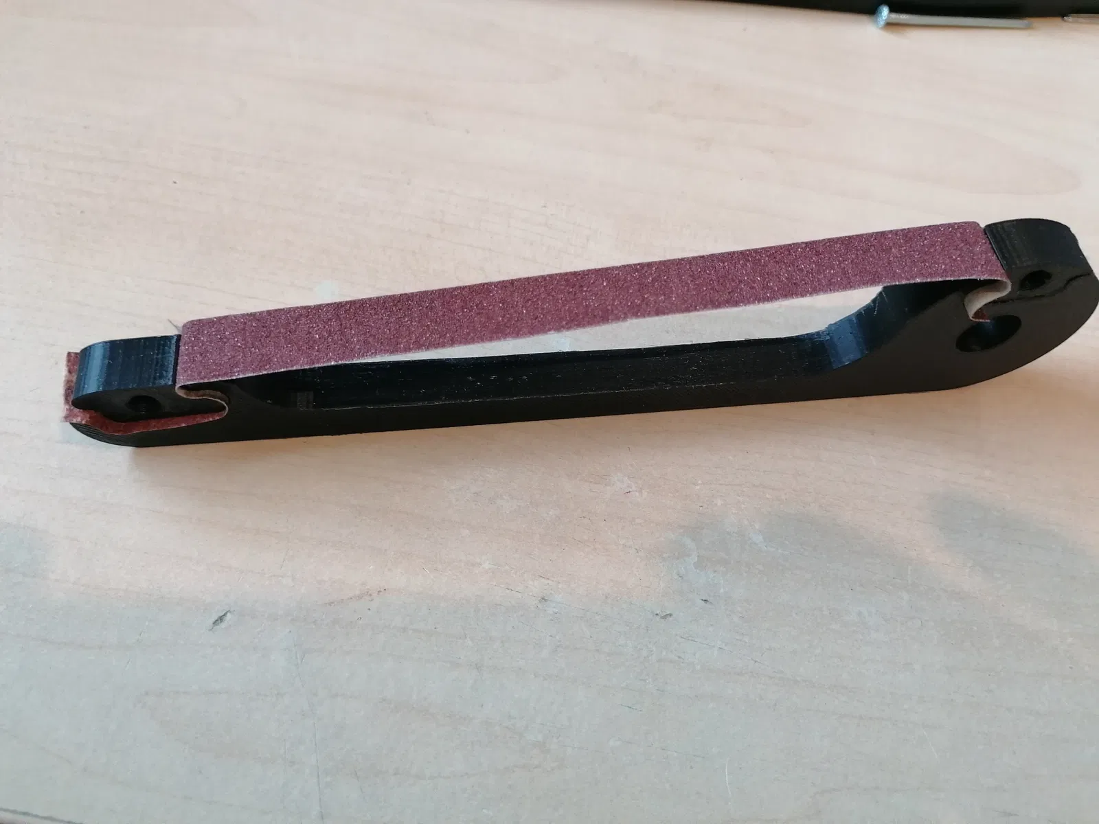 Phiên bản Handy Sandy được mình chỉnh sửa lại nè. Bạn chỉ cần nhét giấy nhám vào rồi ấn cái kẹp vô là xong. Nó sẽ tự động siết chặt lại luôn. Nếu mà siết chặt quá thì bạn có thể ghim cái đinh vô rồi rút ra nha.