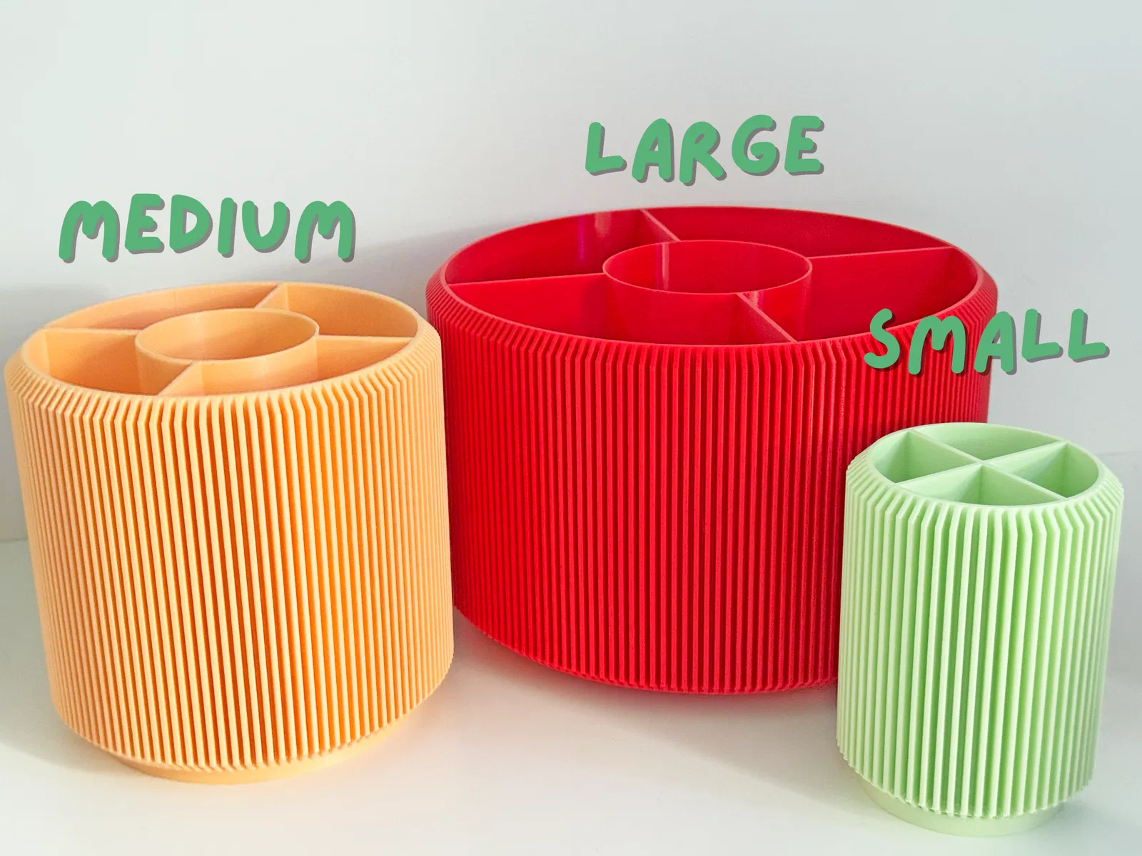 Đây là một sản phẩm mới trong thiết kế Paralane của mình… Bộ Tổ Chức Bàn Làm Việc Paralane. Bộ tổ chức này có ba kích cỡ khác nhau để phù hợp với hầu hết các không gian bàn làm việc. Bạn có thể cất giữ các vật dụng lớn hoặc nhỏ mà bạn cần trong tầm tay. Và nó có thể xoay nha!