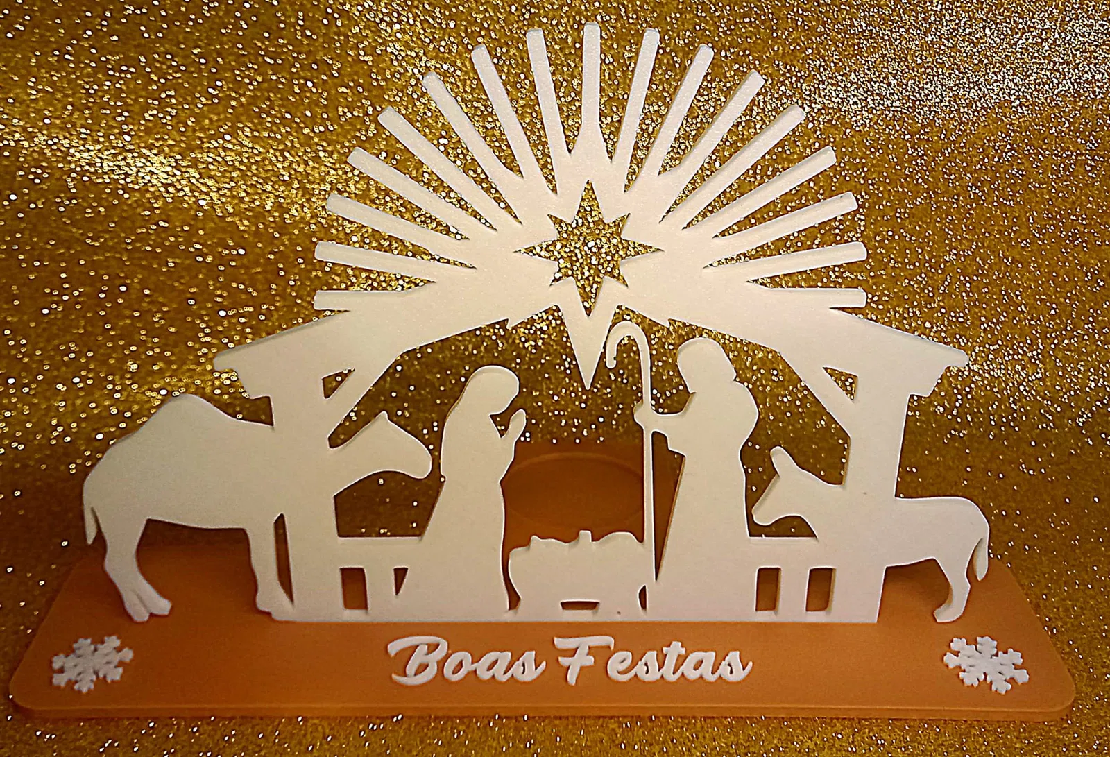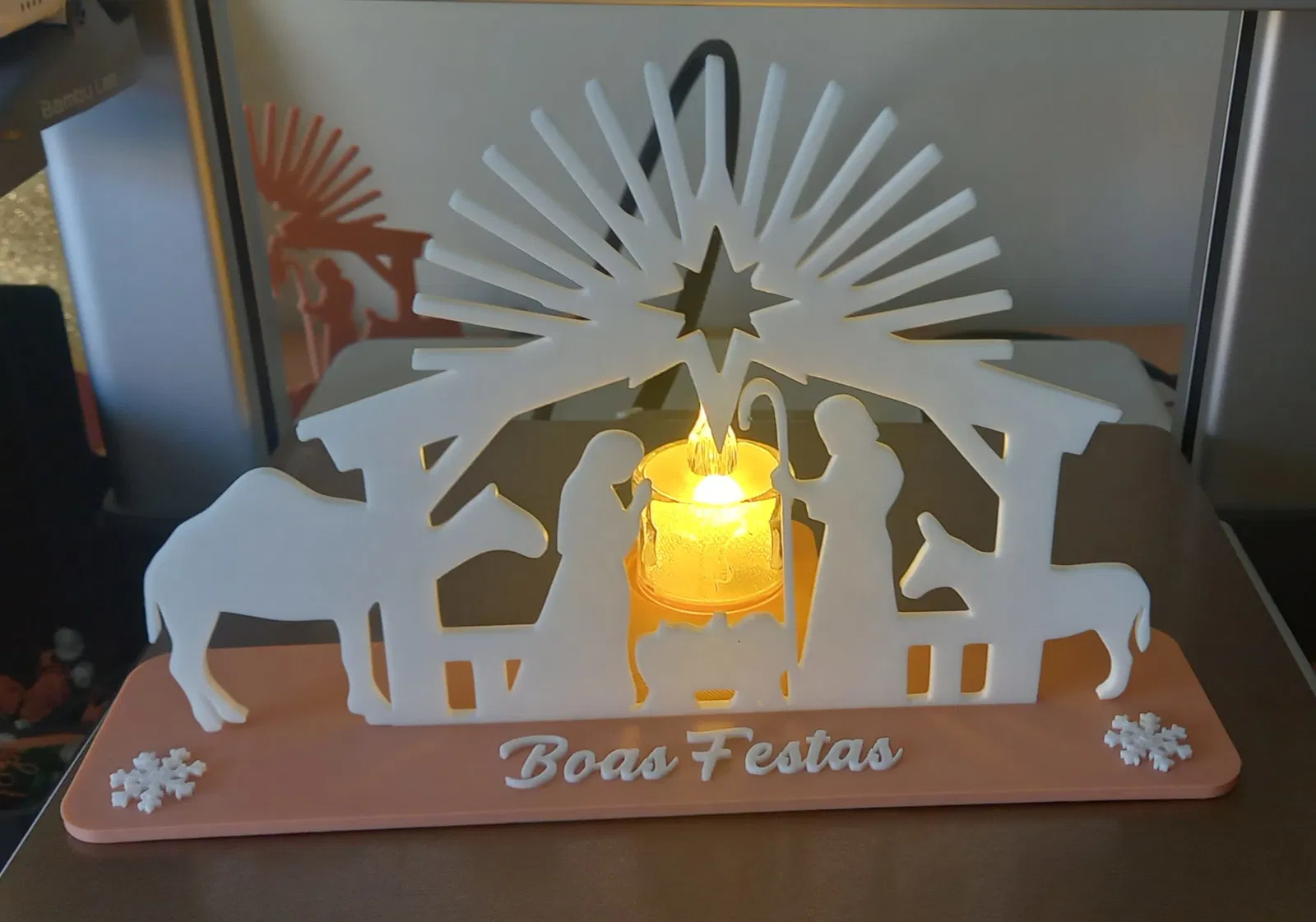 Mô hình hang đá Giáng sinh dạng silhouette, được làm từ Tinkercad, cho phép tùy chỉnh đế và đặt nến trà. Thiết kế đơn giản, không cần AMS, in hai phần với khớp nối hoàn hảo.