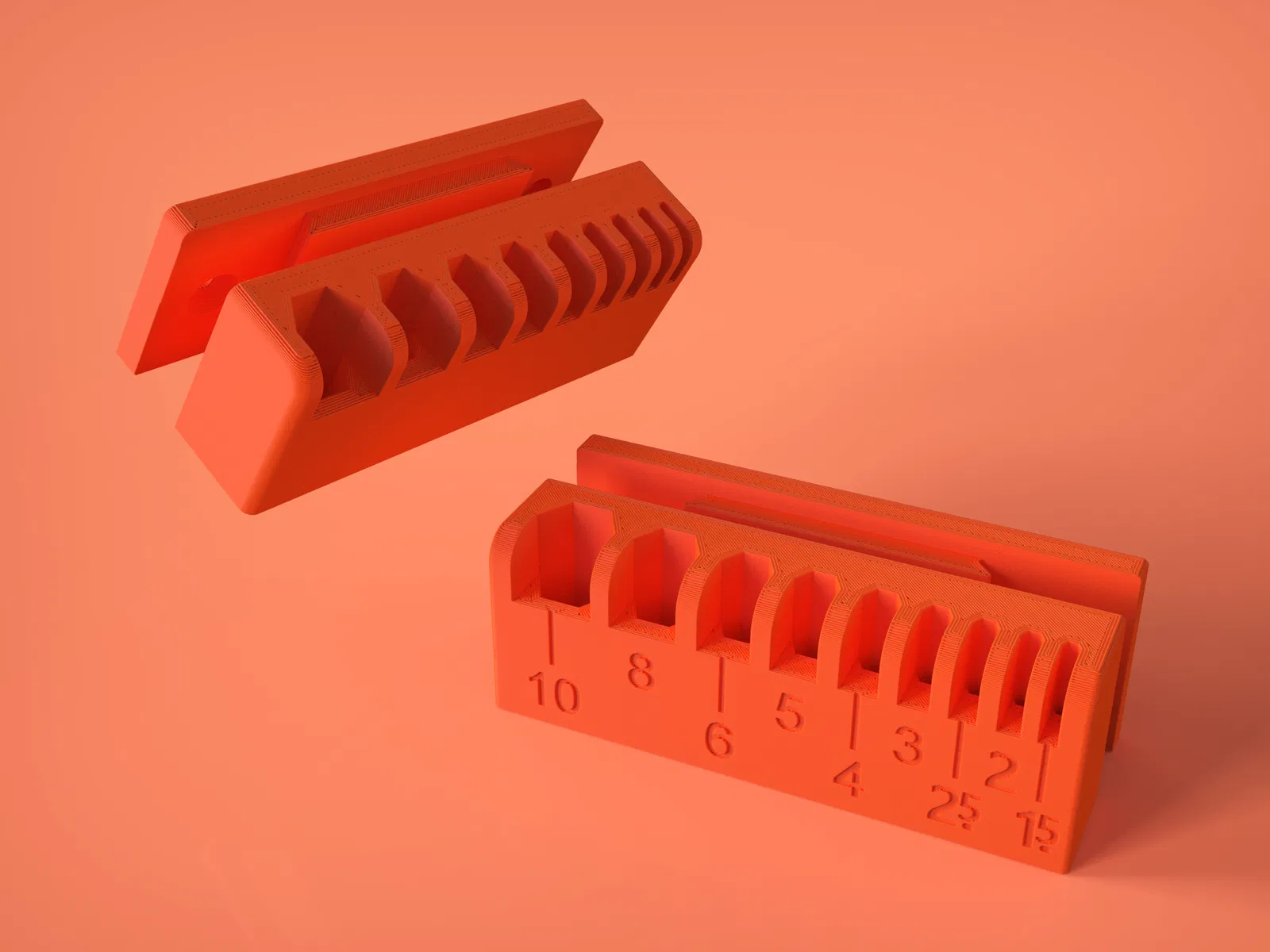 Có hai phiên bản của mẫu này: một phiên bản có vạch chỉ kích cỡ cho lục giác và một phiên bản không có các vạch chỉ này. Cả hai phiên bản đều có 2 lỗ khoét đầu chìm để bắt vít. Bạn có thể cần dùng vật liệu hỗ trợ, tùy thuộc vào khả năng in cầu nối của máy in 3D nhà mình.