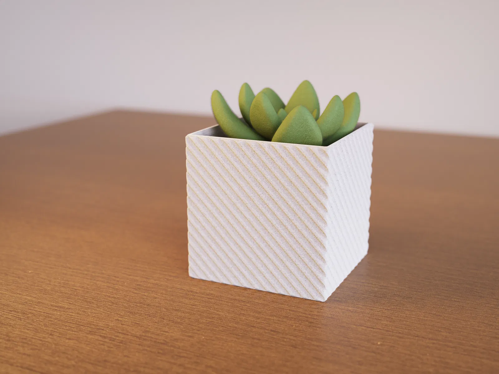 Chậu cây hình học vuông, có hoa văn rãnh, in không cần vật liệu hỗ trợ. Tùy chỉnh kích thước theo ý muốn.