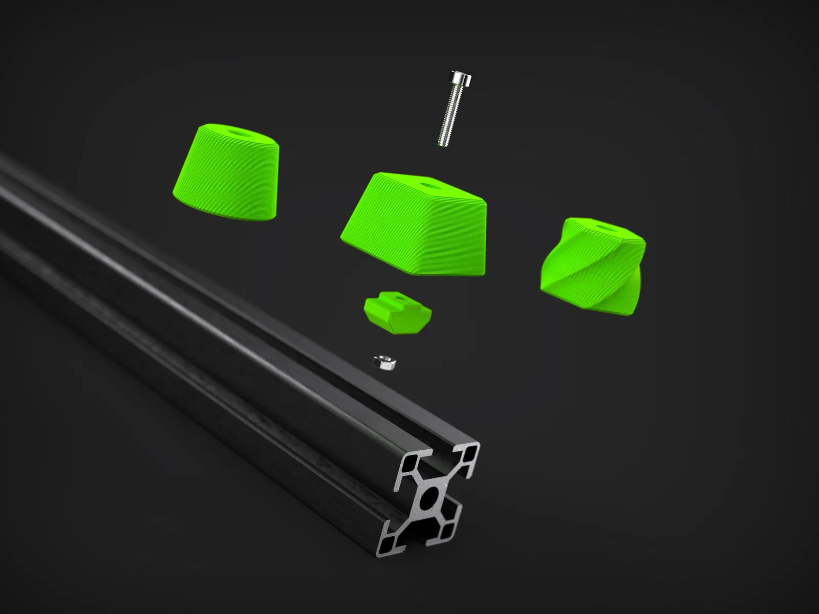 Đây là 3 phiên bản đế khác nhau được thiết kế cho thanh nhôm định hình 3030. Chiều cao của cả ba phiên bản là 20mm. Ngoài ra còn có một T-slot nut có thể in 3D, sử dụng đai ốc M3 thông thường cho ren.