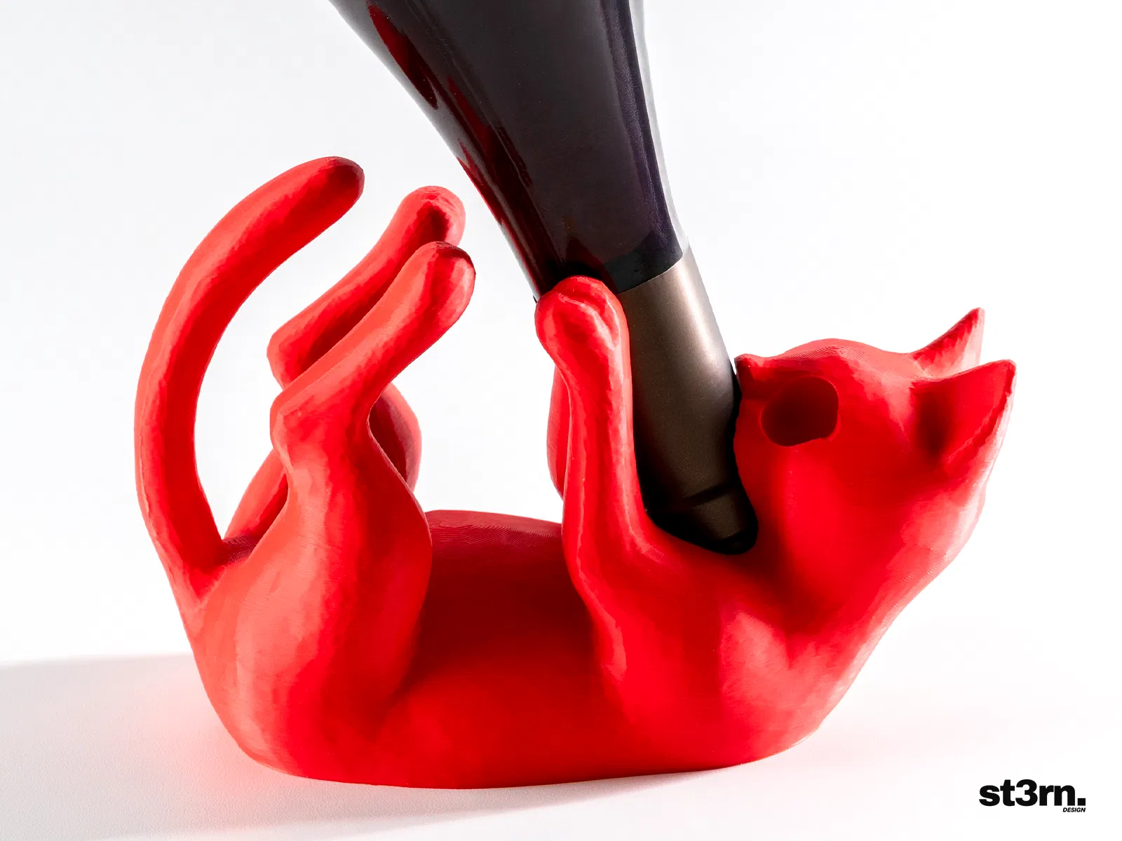 Giá đỡ rượu hình mèo độc đáo, trưng bày chú mèo dễ thương đang thưởng thức rượu. Kích thước 162x82x106mm, in không cần hỗ trợ với cài đặt tối ưu. Hoàn hảo cho trang trí nhà cửa theo phong cách tối giản, hiện đại.