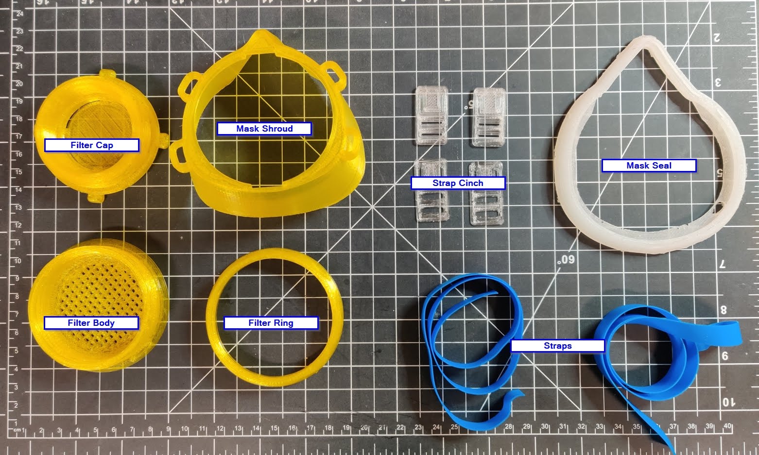 Dự án không chỉ bao gồm việc in 3D khẩu trang mà còn sử dụng các vật liệu phổ biến để tạo ra bộ lọc máy hô hấp được thử nghiệm theo yêu cầu N95 (dung sai 0.3 micron) như một giải pháp tạm thời cho đến khi nguồn cung đáp ứng được nhu cầu.