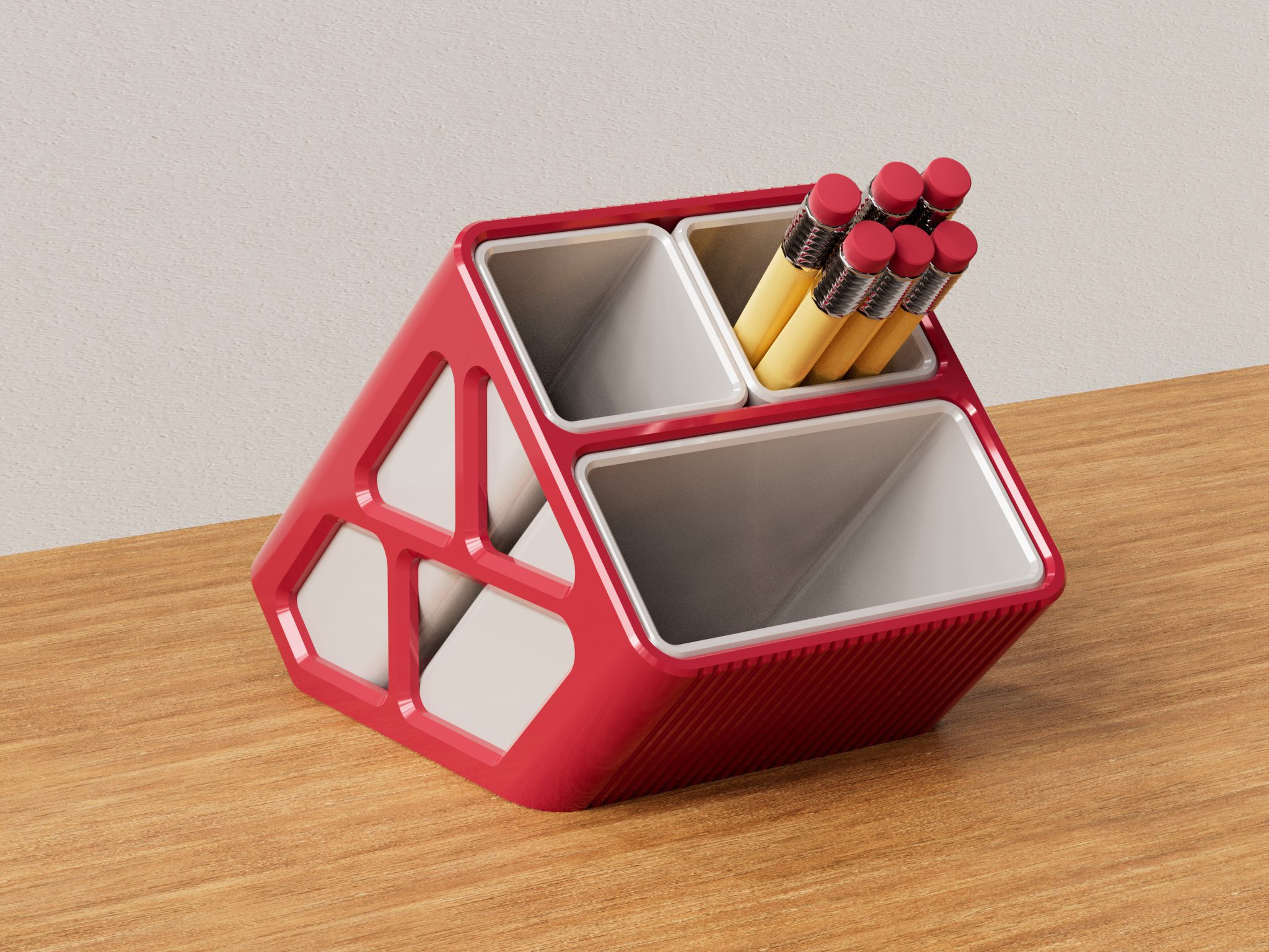 Tui thiết kế cái kệ đựng đồ văn phòng nhìn hiện đại lắm. Hy vọng mọi người thích nha. Cái này in với layer 0.2-0.3mm, tường 2-3 lớp, infill 15% và xài tree supports đó.