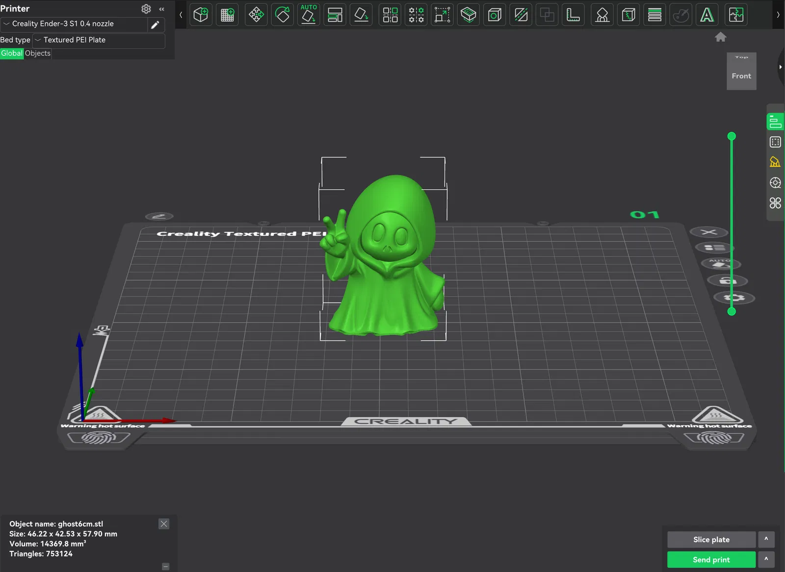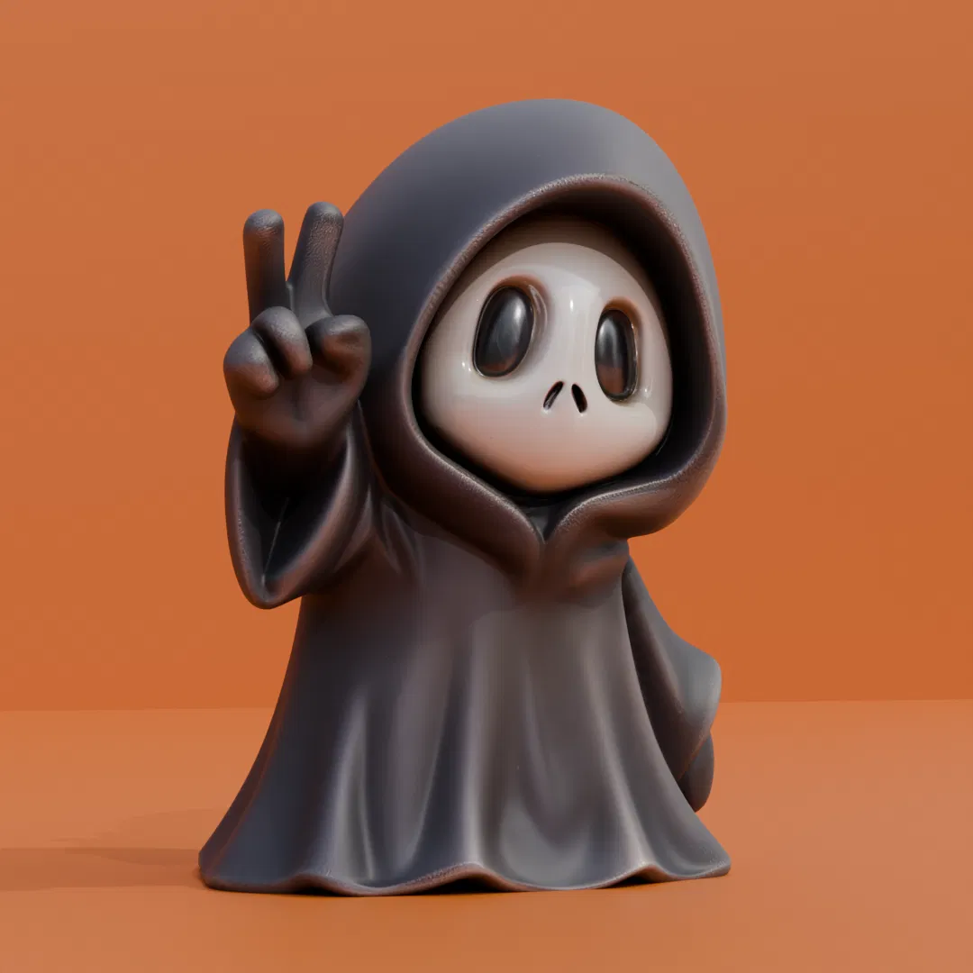 Con ma nhỏ hiền hòa này trông ngộ lắm, lại còn khoác áo choàng hái hồn nữa chớ! Chuẩn bị đón Halloween thôi nào anh em ơi! Cao 6cm, file STL và gCode cho Ender S1 có support đầy đủ.