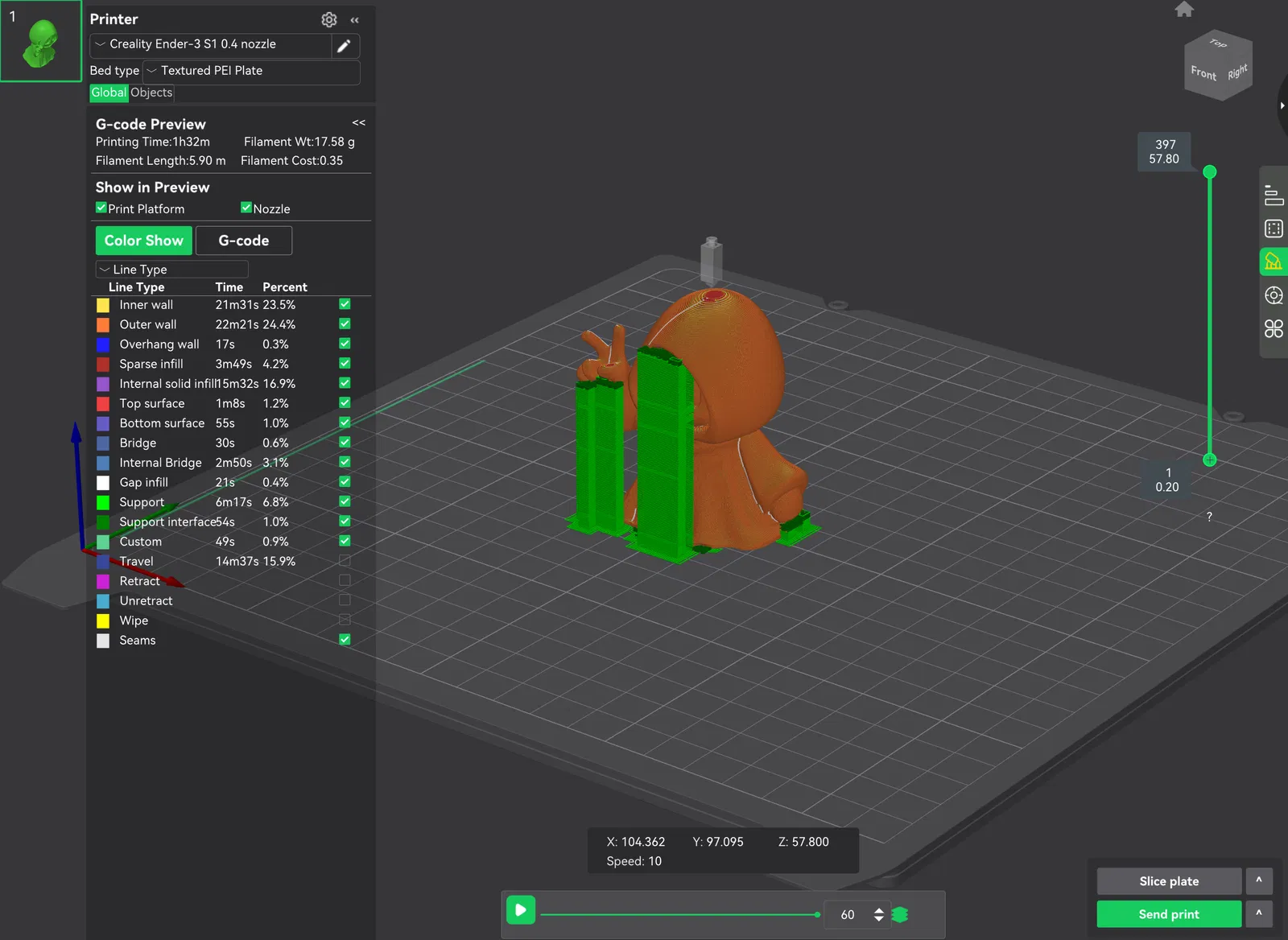 Cao 6cm, file STL và gCode cho Ender S1 có kèm support.