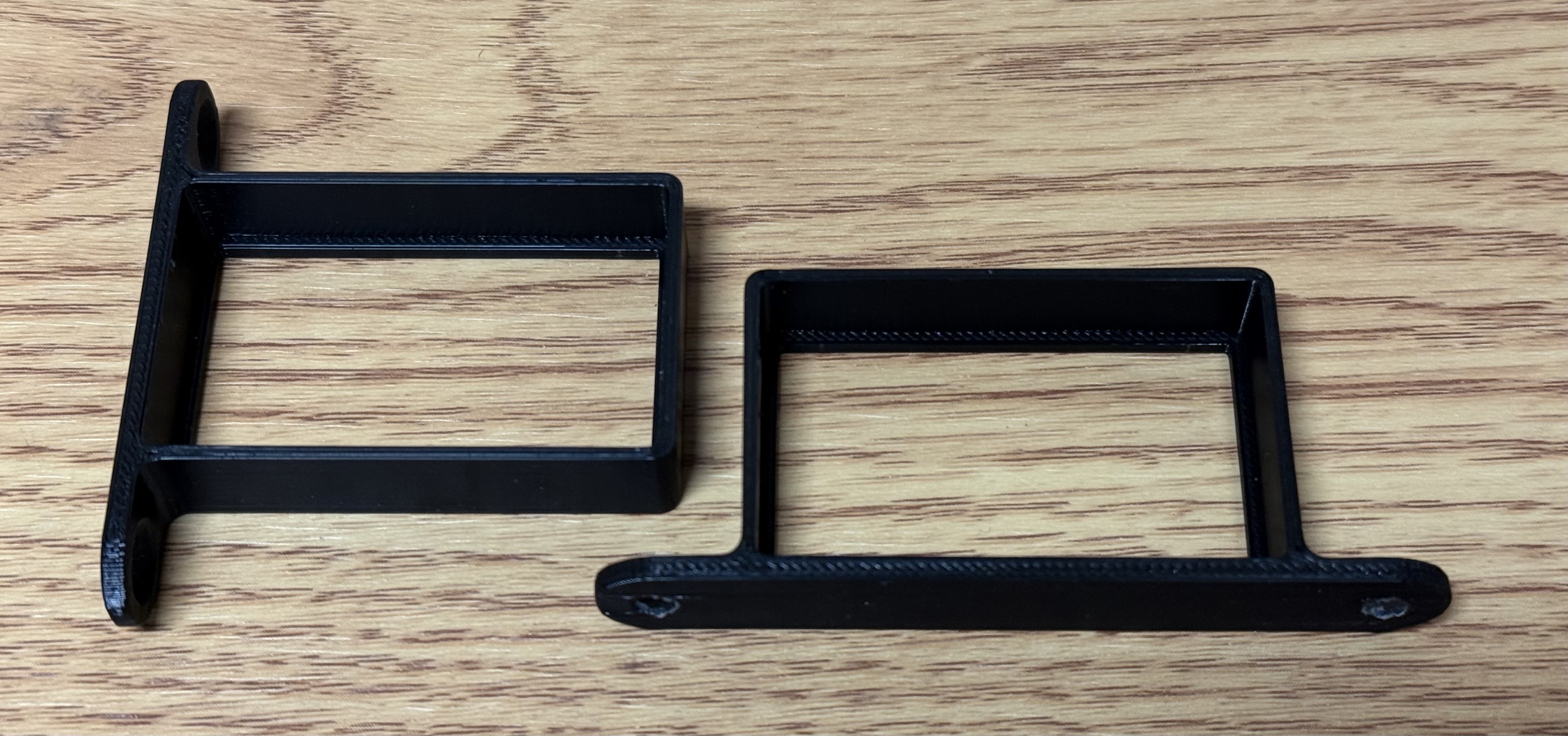 Mấy cái đế này được thiết kế để gắn vừa mấy cái máy đo độ ẩm hình chữ nhật tiêu chuẩn nha. Cái lỗ hình chữ nhật có kích thước 45.5mm x 26.5mm, được thiết kế để máy đo có thể bấm vô được. Mặt sau của đế thì hở hoàn toàn để luồng không khí tới cảm biến độ ẩm/nhiệt độ được thông thoáng. Hai lỗ vít có khoét lõm/vát cạnh cho phép dùng vít đầu bằng đường kính 3mm để gắn đế lên mặt phẳng. Mấy mẫu này được in bằng PLA với độ cao lớp là 0.2mm và mật độ điền đầy là 100%.
