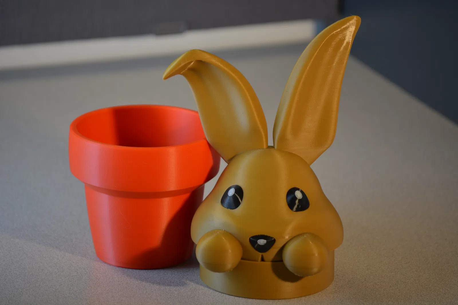 Một mô hình chậu hoa hình thỏ Phục sinh vừa đáng yêu vừa tiện dụng. Có sẵn phiên bản in đơn vật liệu và đa vật liệu, kèm theo hướng dẫn chi tiết và cập nhật mới nhất. Thích hợp để trang trí Phục sinh và cất giữ đồ nhỏ.