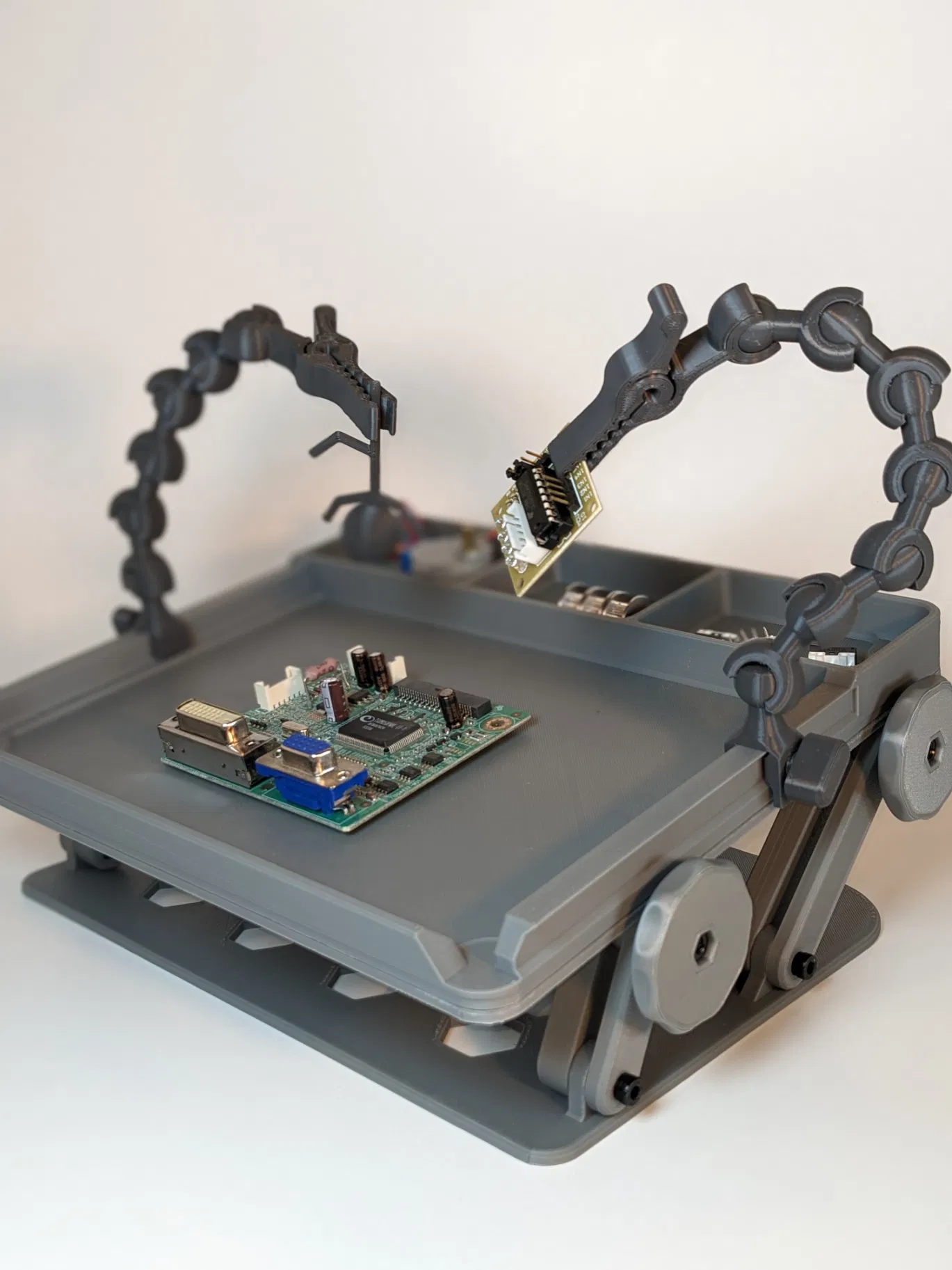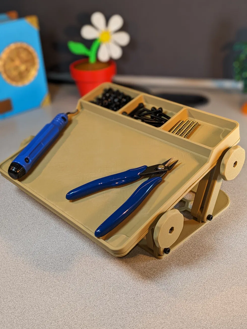 Tôi đã bao gồm các tệp STEP để khuyến khích sửa đổi các khay có thể gắn vào trên cùng để đáp ứng nhu cầu của bạn. Ngoài ra còn có một tệp STEP cho ổ cắm sẽ khớp với các khớp bi. Nếu bạn thấy mình cần một giải pháp cho một dụng cụ bạn đang sử dụng, bạn có thể dễ dàng thiết kế thứ gì đó có thể giao tiếp với các khớp bi của mẫu này.
