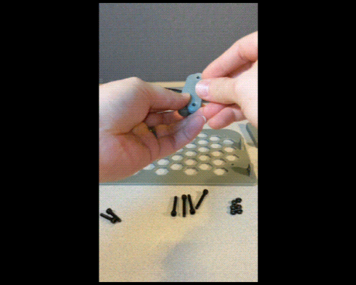 - Lấy 1 ốc M4x20 và 1 khớp nối mỏng. Luồn ốc qua khớp nối và vào một trong các lỗ khớp từ bên ngoài trên phần dưới.