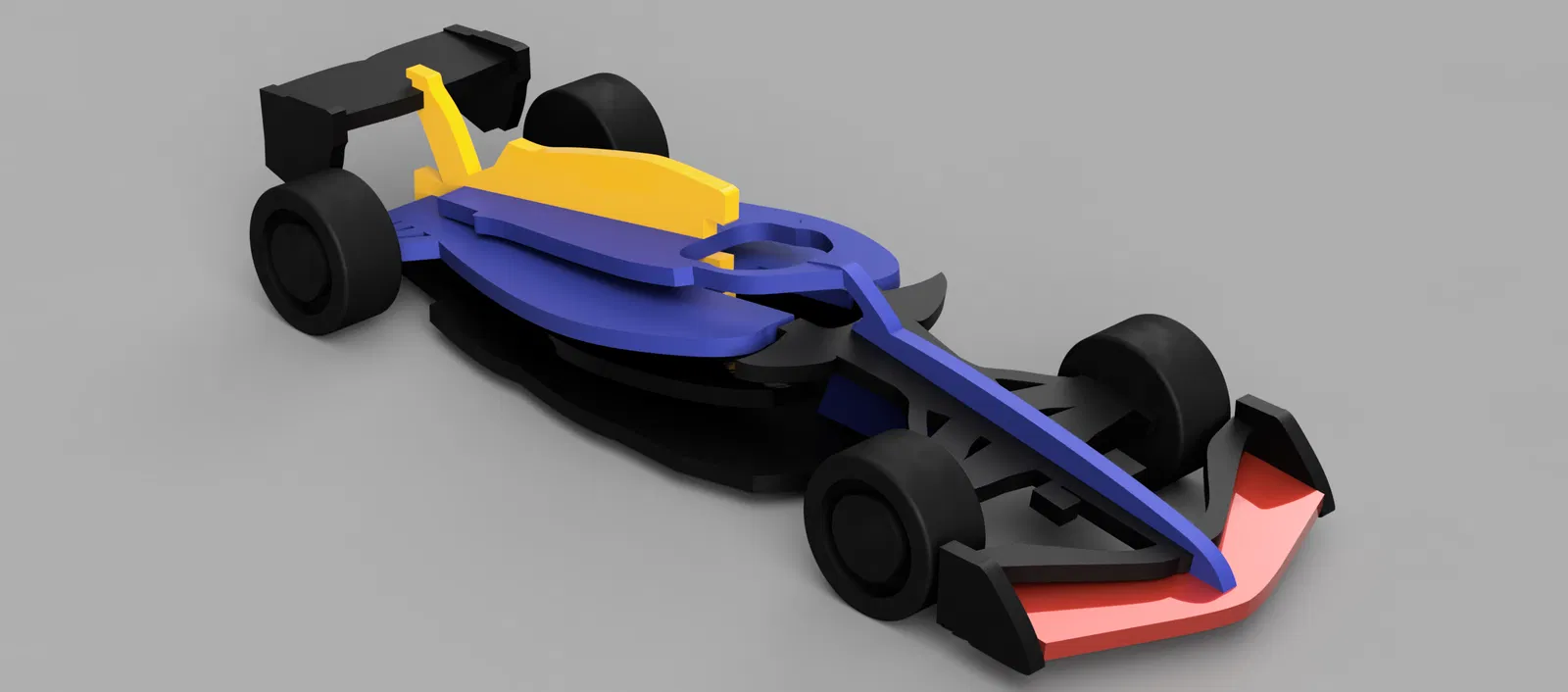 Bộ kit card dựa trên một chiếc xe F1 hiện đại. Tất cả các bộ phận được tách rời, cho phép tùy biến phối màu. Khuyến khích kiểm tra độ bám dính bàn in và chống cong vênh trước khi in.
