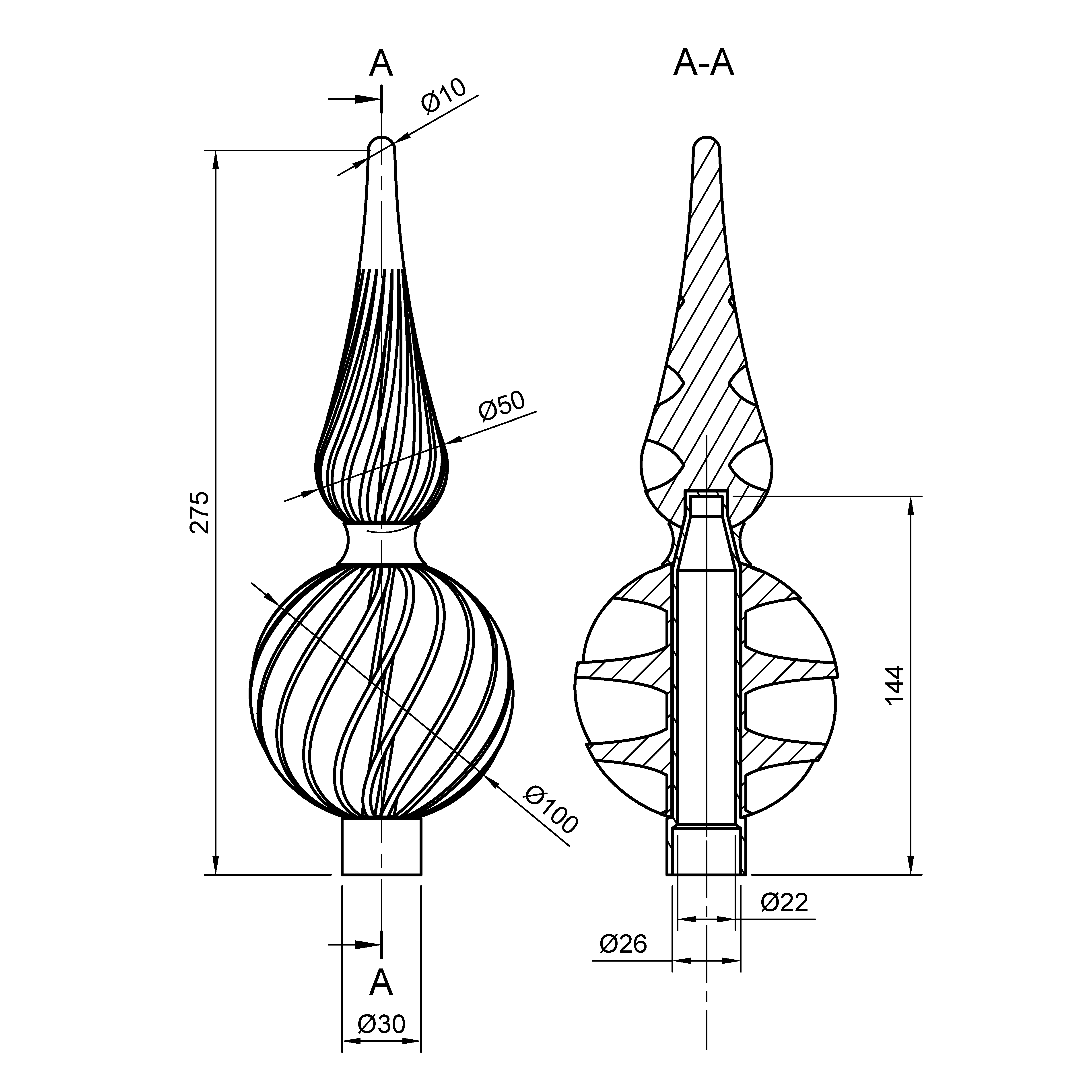 • Lỗ gắn: ∅22 × 144 mm