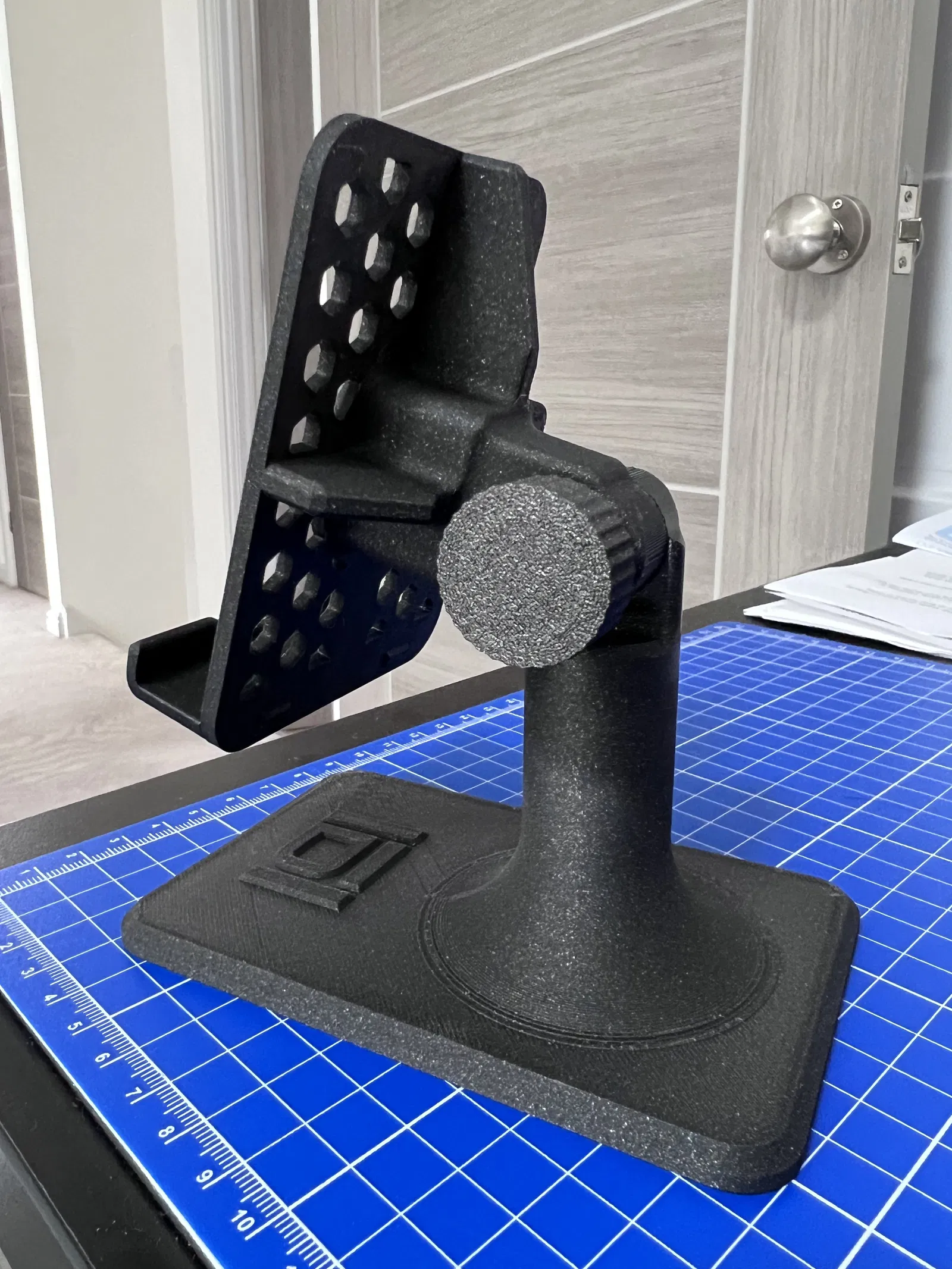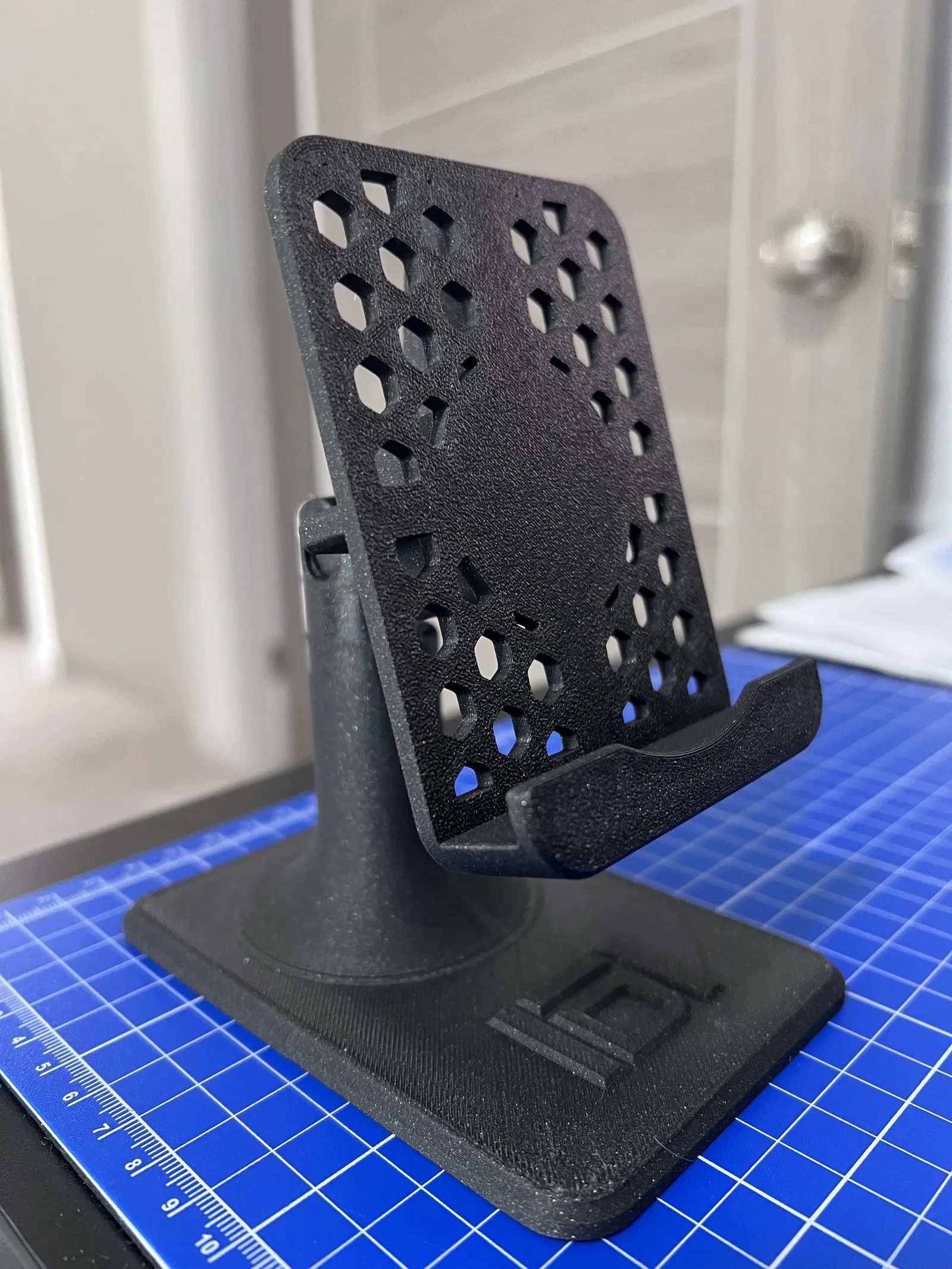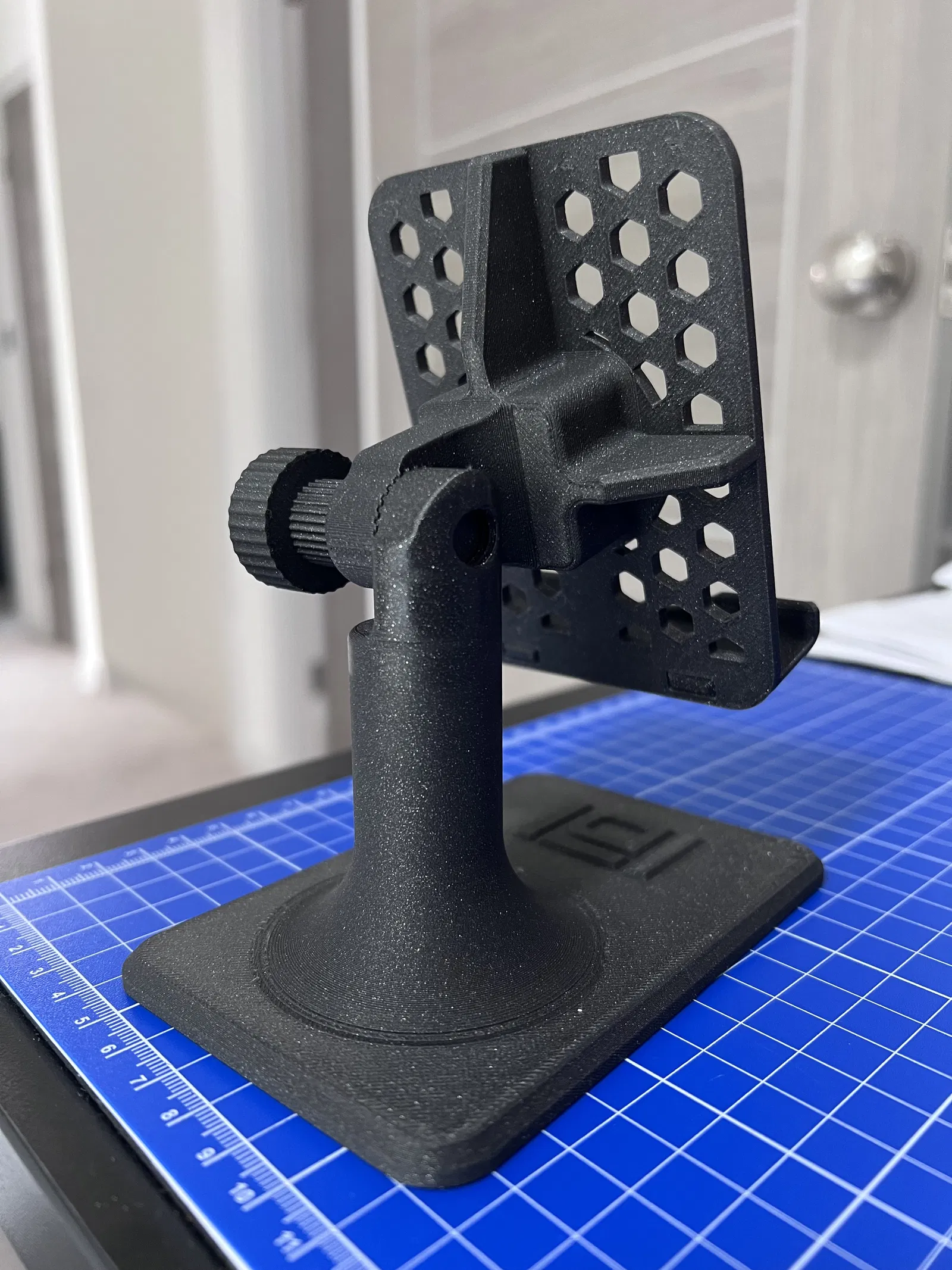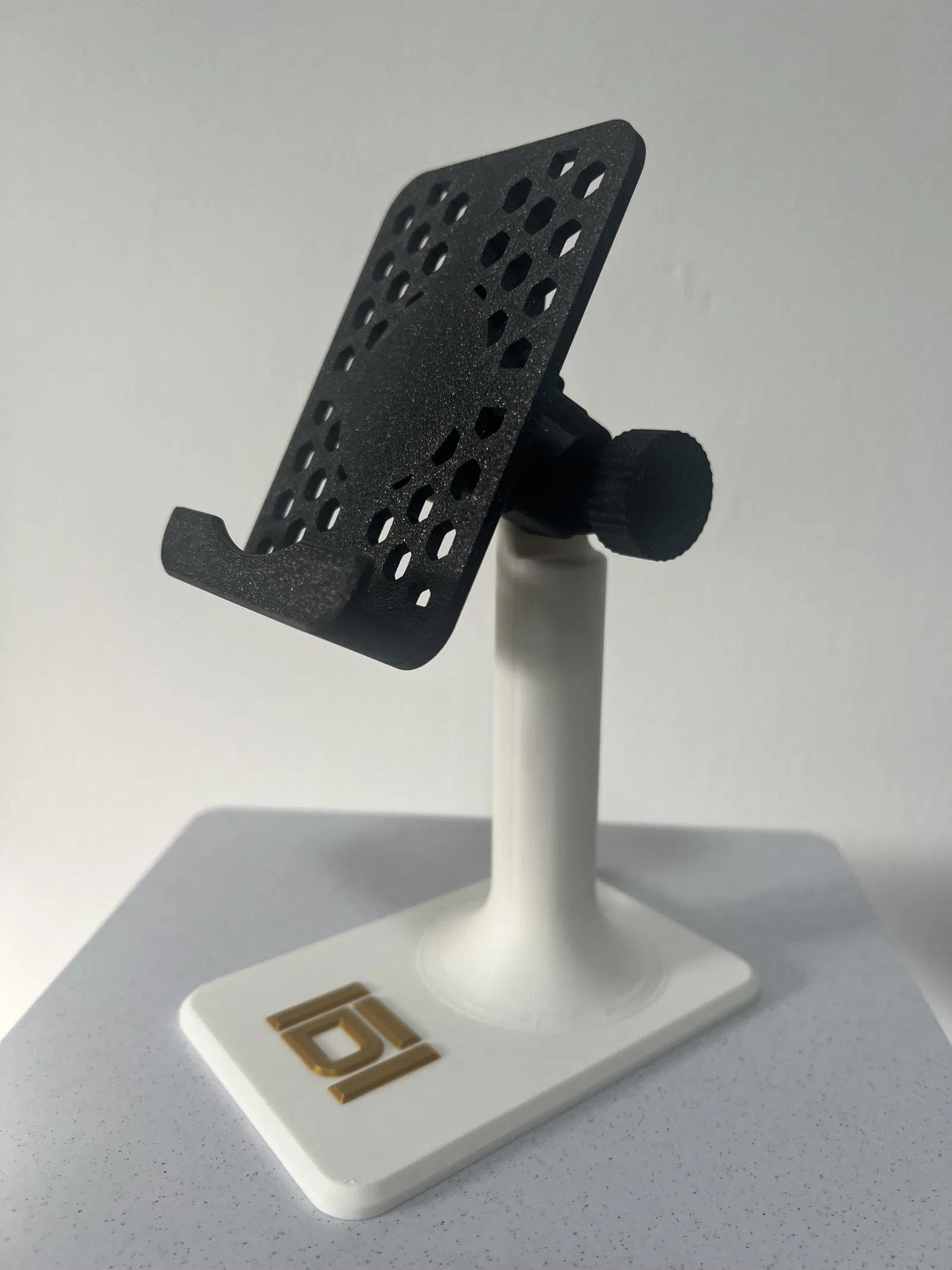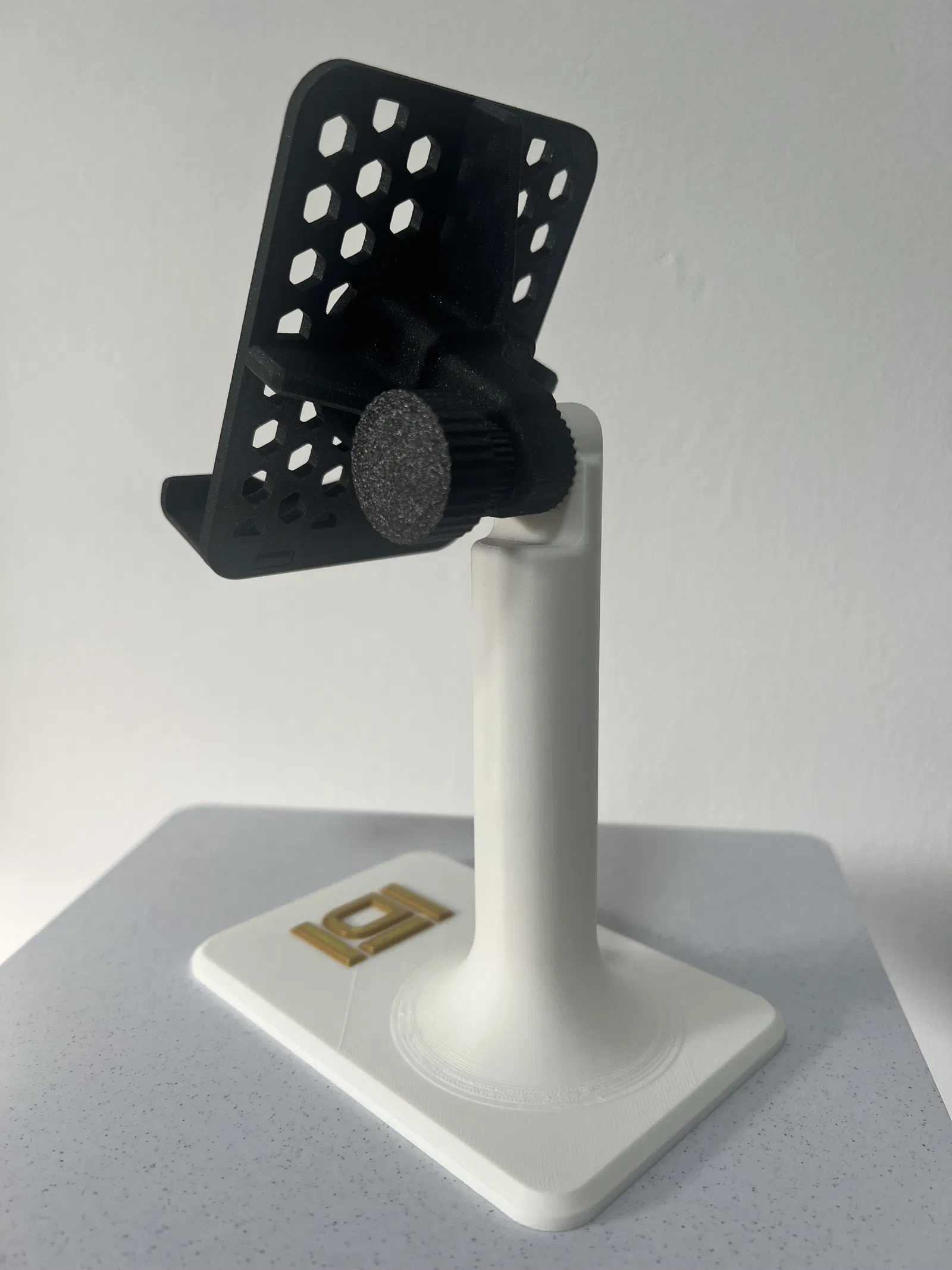 Chân đế điện thoại này cho phép bạn điều chỉnh độ nghiêng, với các tùy chọn cập nhật bao gồm đế 100mm và giữ điện thoại có lỗ sạc. Một thiết kế phù hợp với chân đế bàn phím và máy tính bảng.