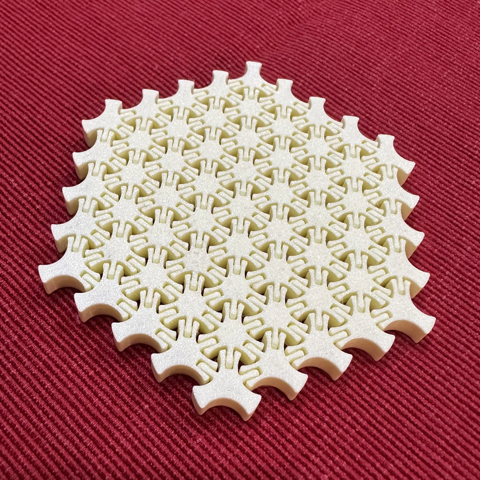 Một đế lót ly dẻo, nguyên khối với thiết kế mắt xích độc đáo. In xong là xài liền, không cần lắp ráp gì hết. Nó cong và chuyển động mượt mà, thích ứng với mọi bề mặt — một món đồ vừa vui vừa tiện lợi cho bàn làm việc hay không gian của bạn.