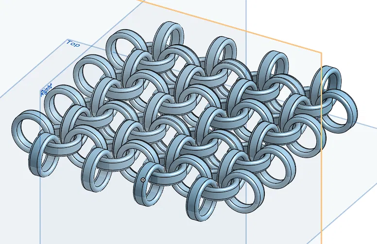 Mô hình này mô phỏng kết cấu vải của áo giáp lưới, được tạo thành từ vô số các vòng kim loại liên kết với nhau. Thích hợp cho các dự án in 3D yêu cầu chi tiết phức tạp và hiệu ứng bề mặt độc đáo.