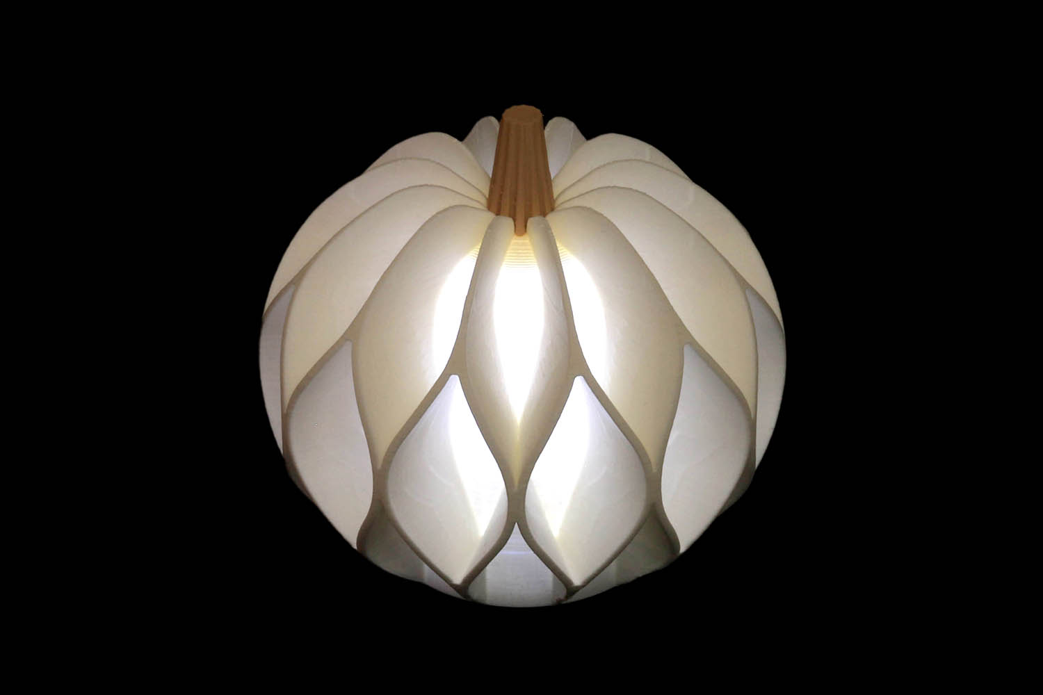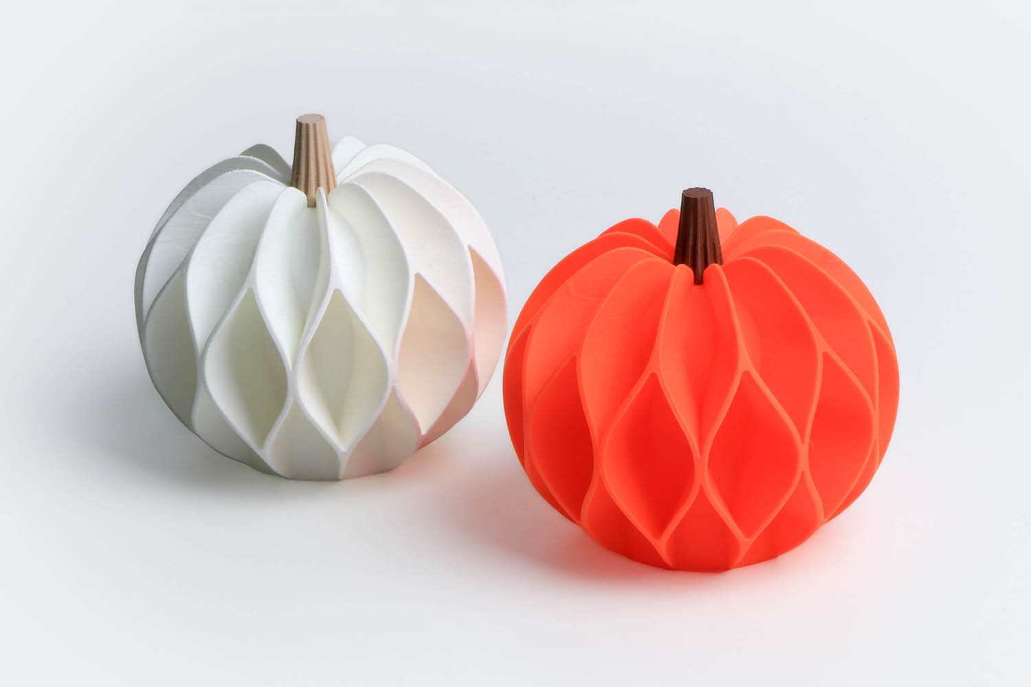 Mẫu bí ngô Halloween hiện đại, lấy cảm hứng từ các món đồ trang trí tổ ong bằng giấy. Bên trong rỗng để đặt đèn trà LED. Kích thước ước tính 90 x 90 x 70 mm, lỗ cho đèn LED ø 45 mm. In bằng PLA, không cần hỗ trợ.