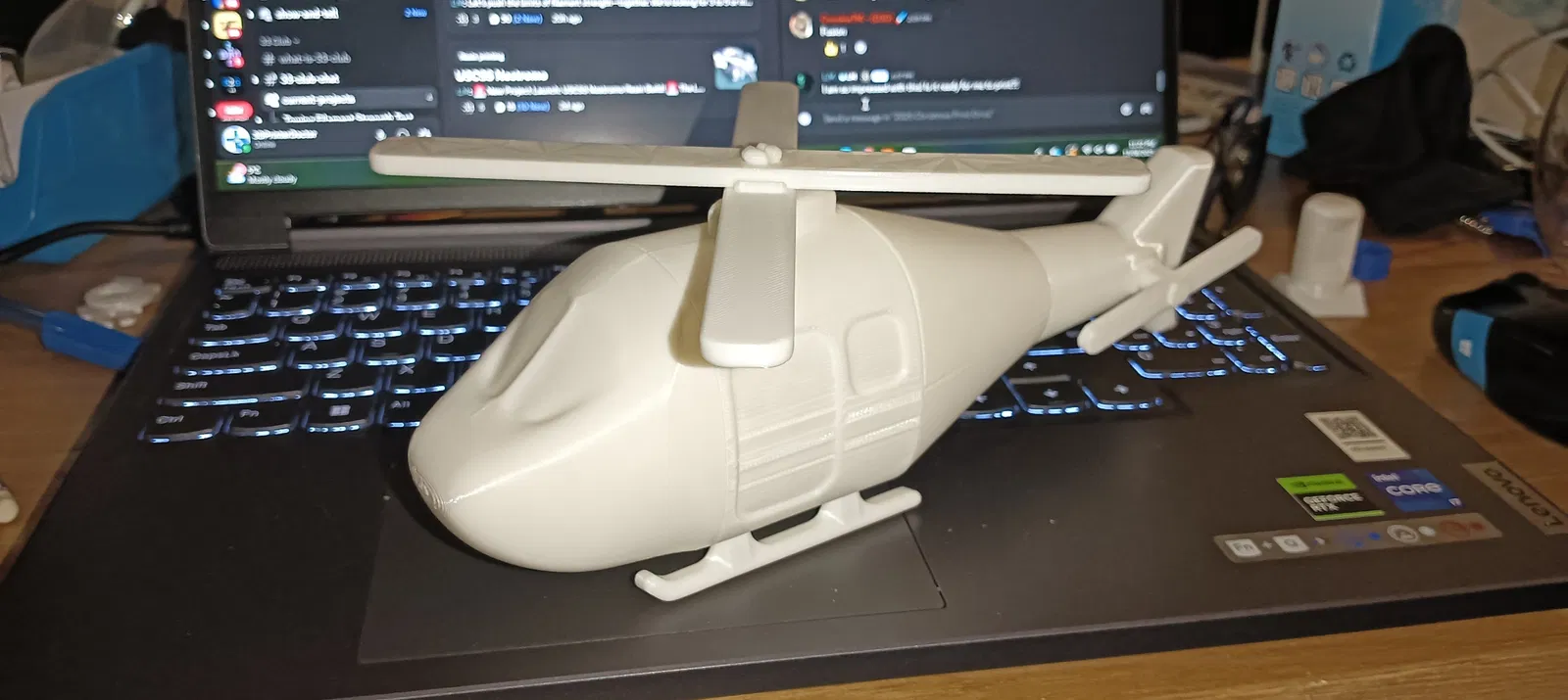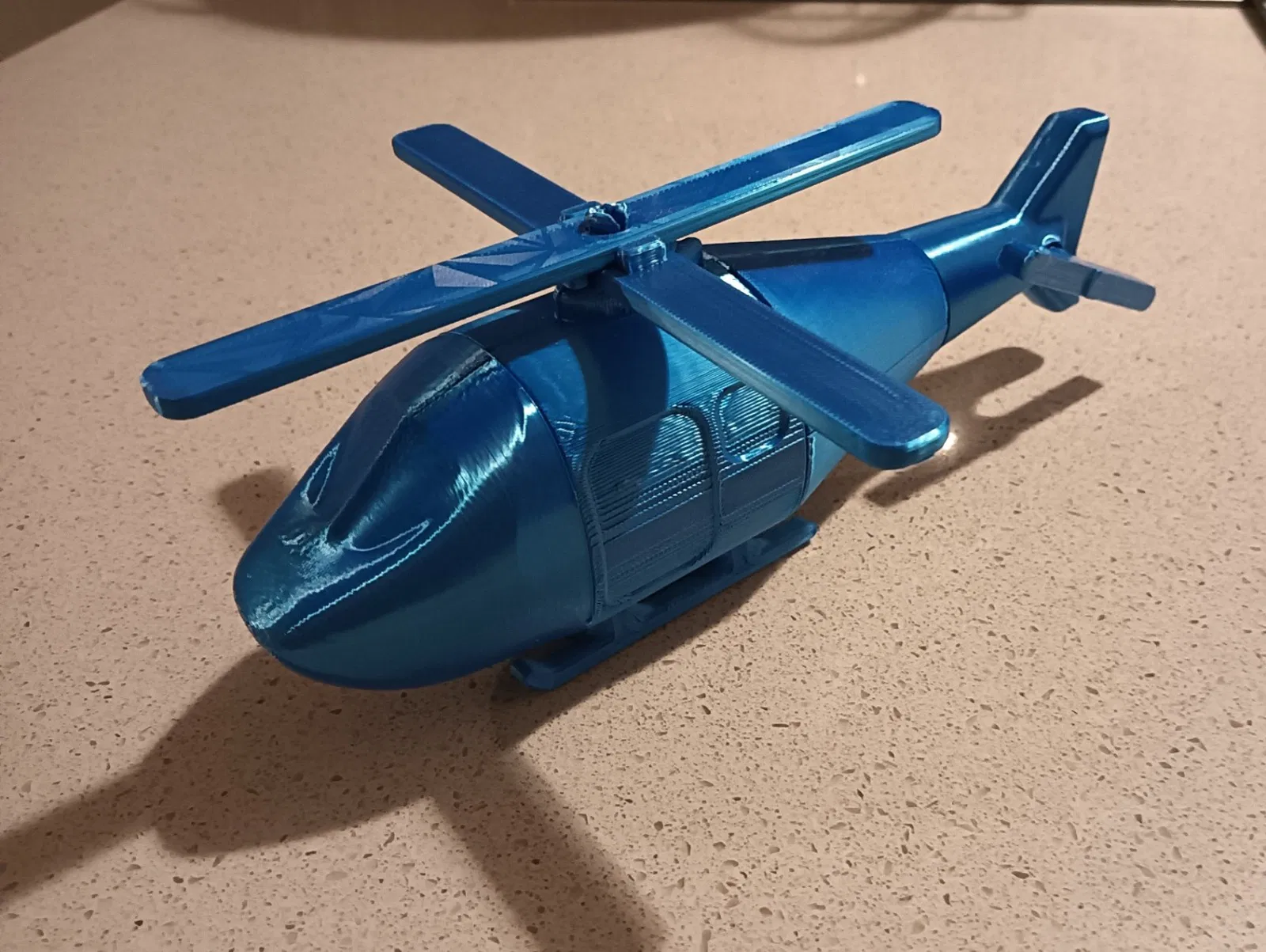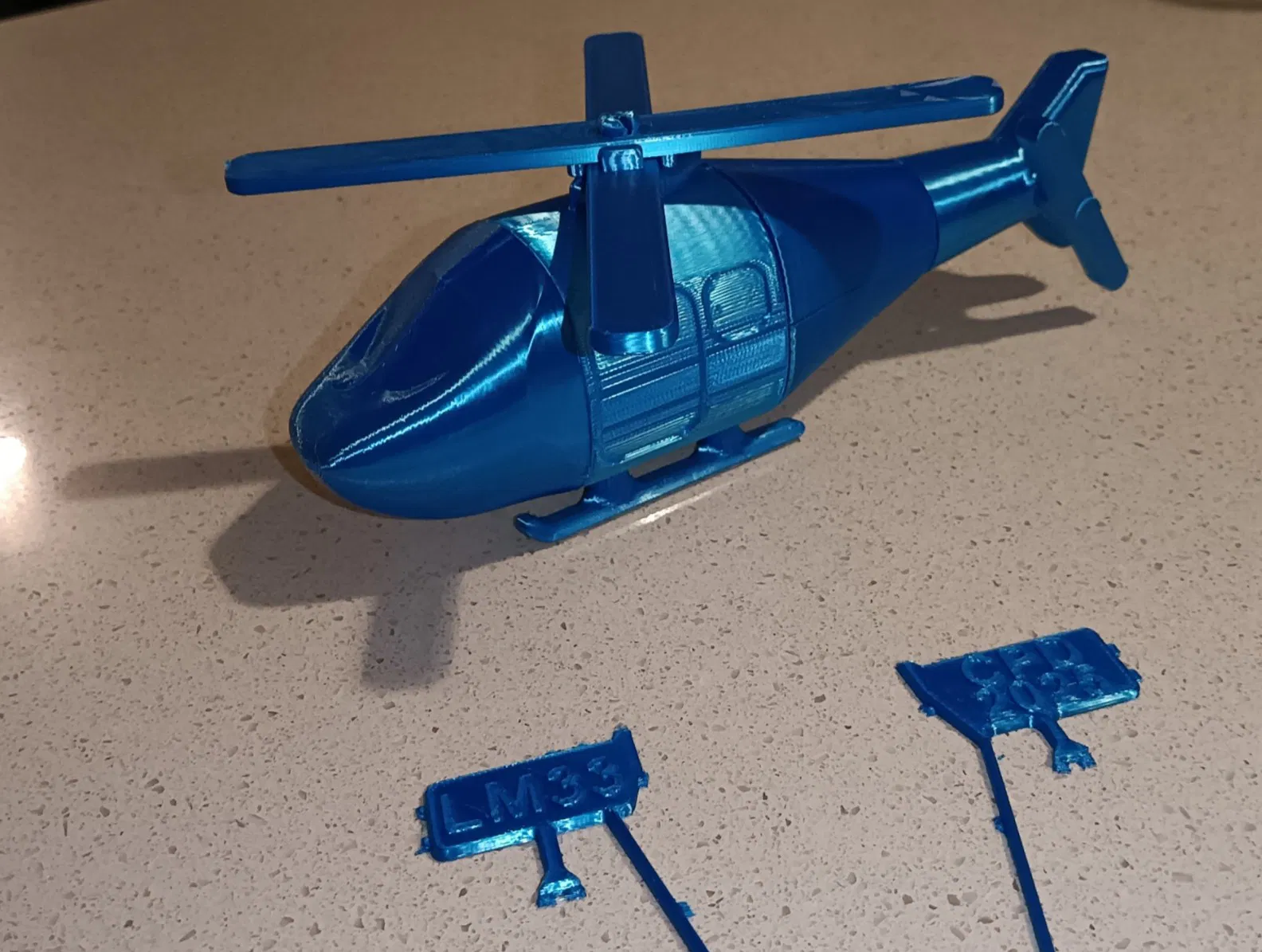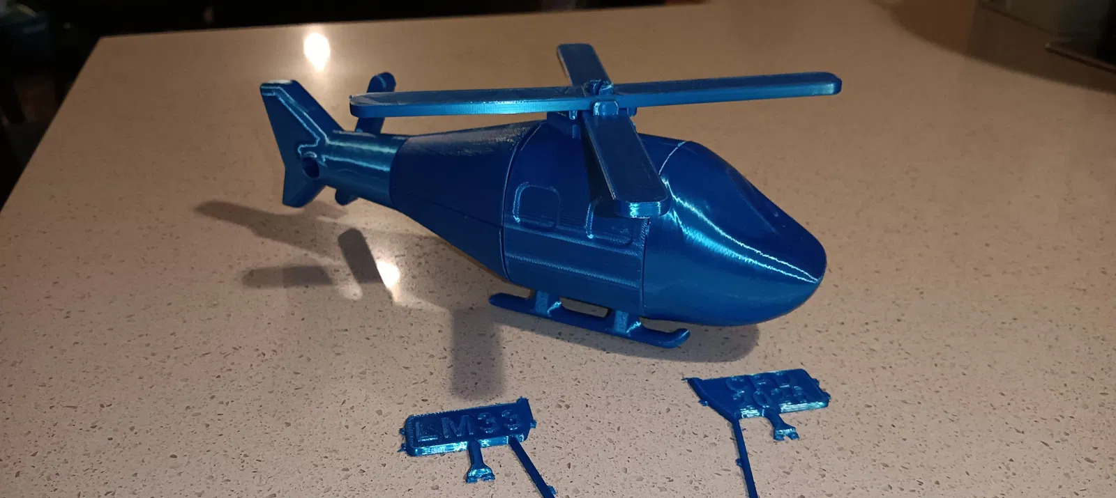 Mô hình máy bay trực thăng đồ chơi bằng nhựa Kit Card, không cần support, lắp ráp dạng snap. Phiên bản THK có khung và nhánh dày hơn cho máy in không có flexplate. Cánh quạt có thể hơi cứng lúc đầu nhưng sẽ mềm dần khi sử dụng.