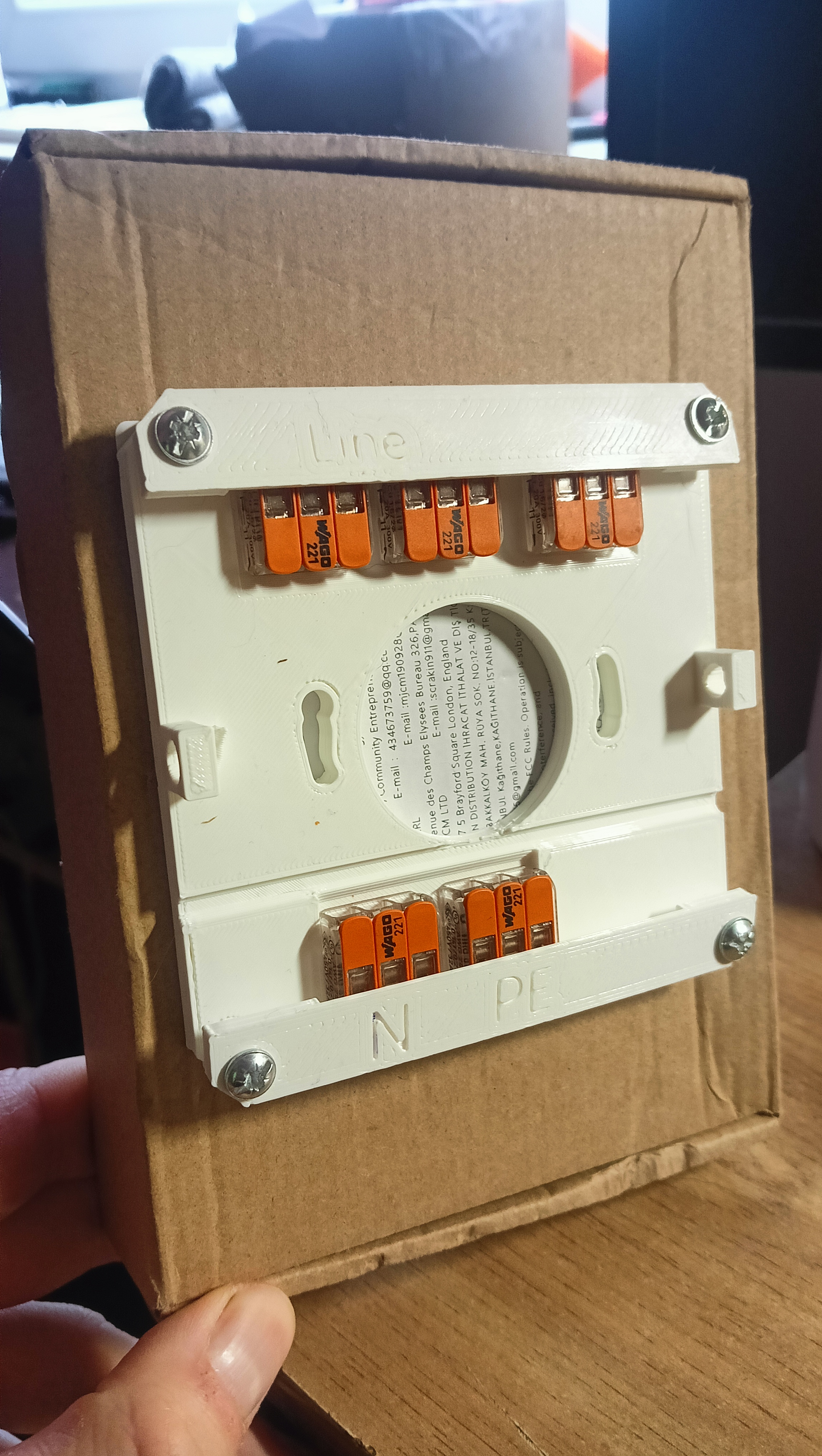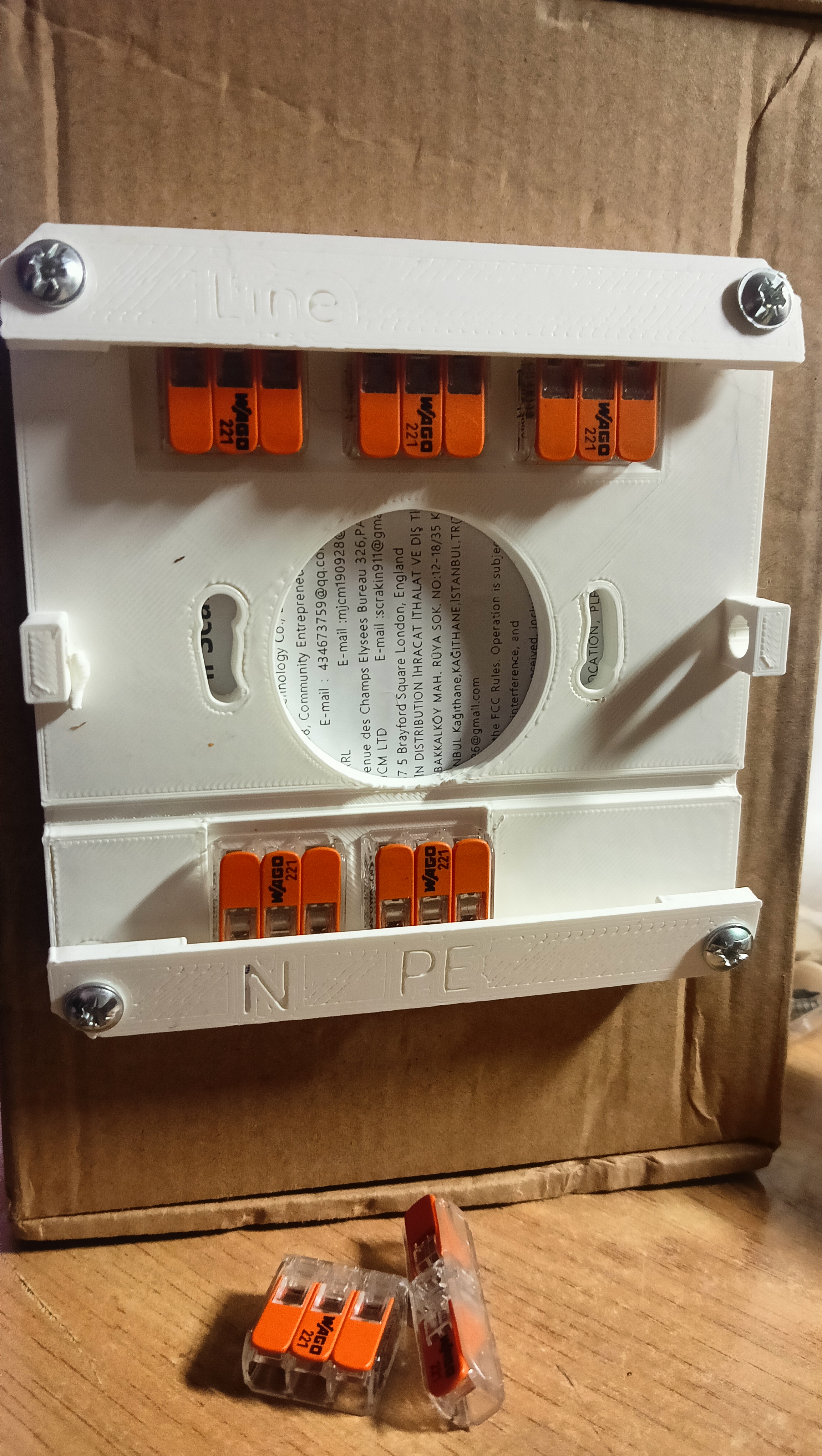 Hộp đấu nối được thiết kế để chứa 5 cầu nối Wago 221 loại L1, L2, L3, N và PE, giúp sắp xếp dây điện gọn gàng và an toàn cho các dự án in 3D của bạn.