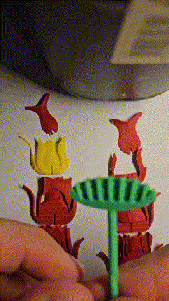Dùng scraper để gỡ cẩn thận khỏi bản in, đặc biệt là phần que ở giữa. Tôi đã thử nghiệm với Bambu PLA và máy P1s, tiếc là hiện tại chưa có máy Prusa.