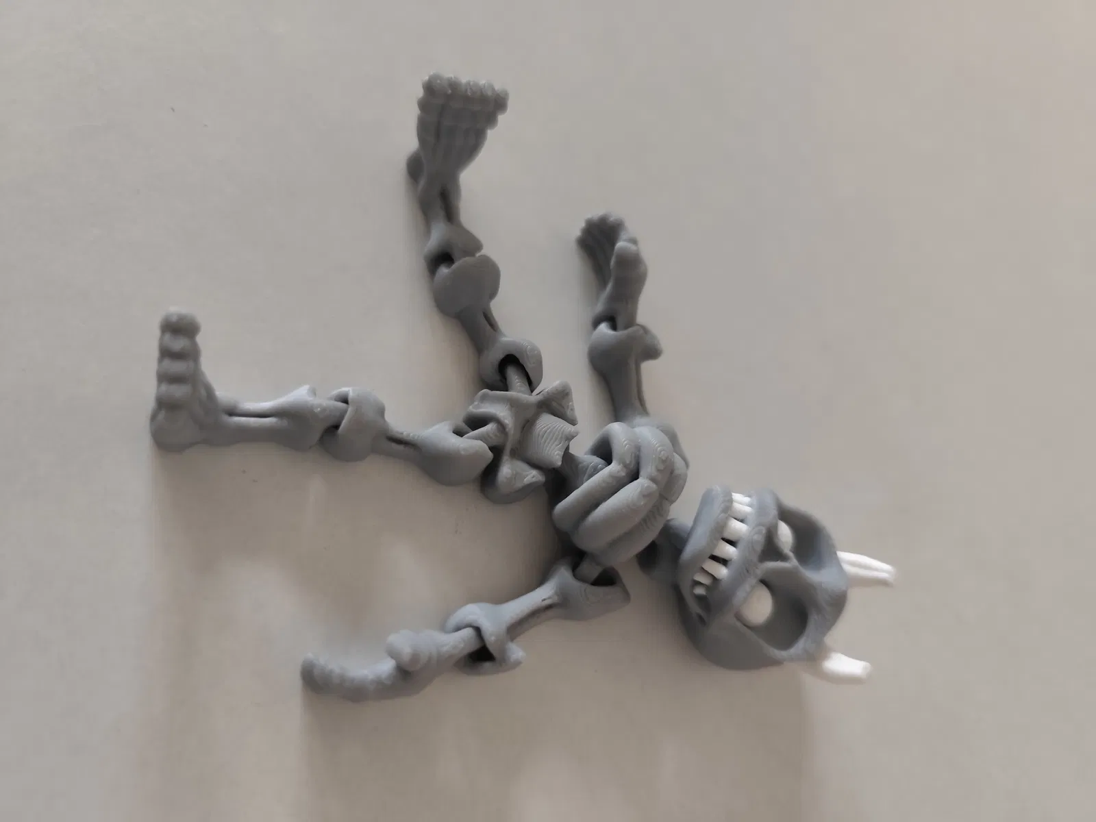 Mô hình bộ xương flexi này in ra không cần support nha. Đây là bản remix từ mô hình cũ của tui, in bằng PLA. Trong file có 2 mẫu, một mẫu làm móc khóa 10cm và một mẫu 20cm.