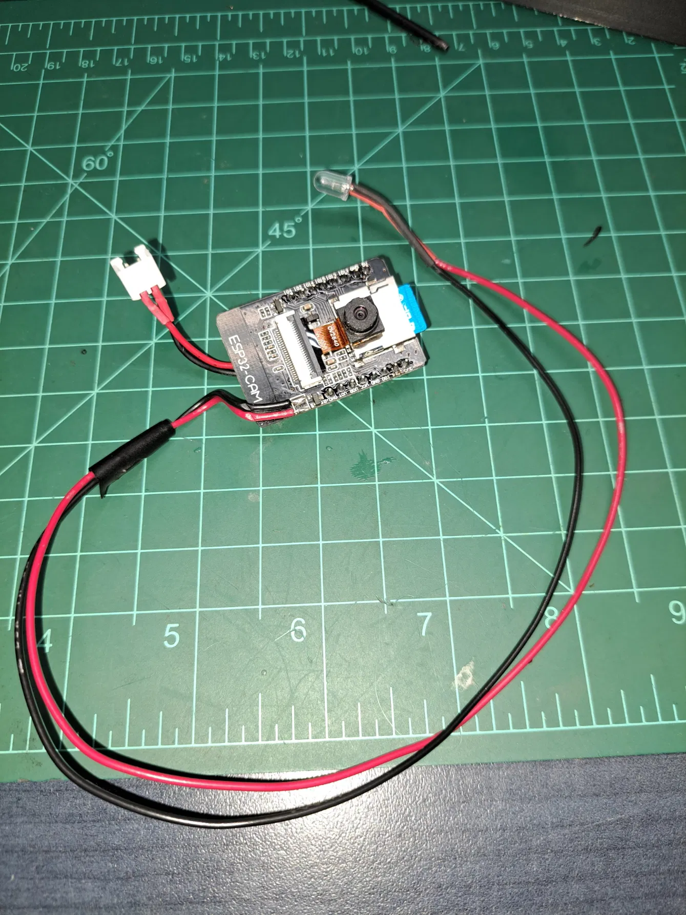 Tôi đã gỡ bỏ đèn LED của esp32 (dùng khí nóng hoặc tháo kiểu như trong video của MakerMeik) và hàn dây cho đèn LED lên bảng mạch.