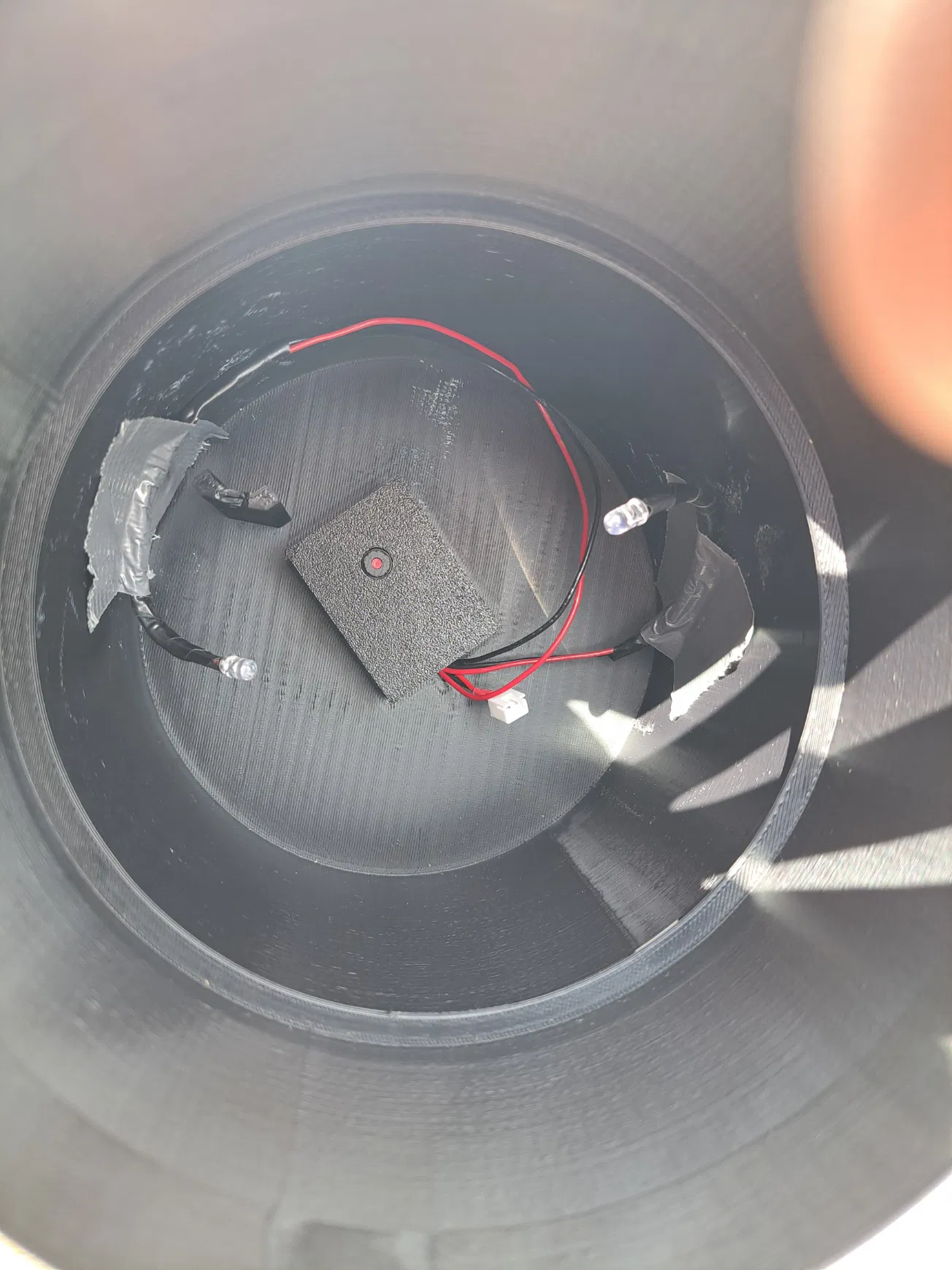 Cập nhật: Phát hiện ra rằng một miếng keo nến (cho súng bắn keo) dán lên đèn LED tạo ra bộ khuếch tán tuyệt vời với chi phí rẻ và loại bỏ hầu hết hiện tượng lóa và phản chiếu. Cắt một miếng keo khoảng 10mm, hơ nóng một mặt bằng bật lửa và dán nó lên đèn LED.