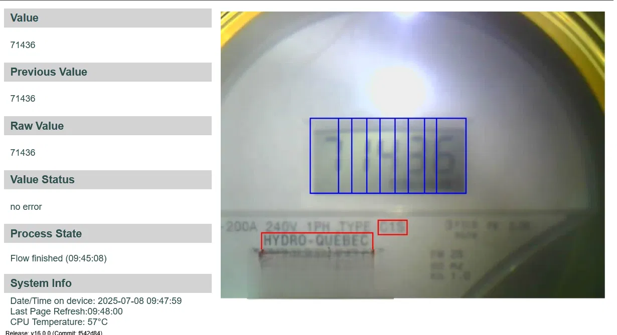 Hoạt động tốt khi cuối cùng đã tinh chỉnh xong. Phần quan trọng nhất là vị trí của đèn LED, đã thử rất nhiều vị trí khác nhau. Mẹo là chiếu sáng tối đa vào mặt sau của màn hình LCD mà không bị phản chiếu. Tùy chọn luồng trực tiếp giúp ích rất nhiều cho việc đó. Mỗi lần bạn thay đổi thứ gì đó, bạn phải tạo một ảnh tham chiếu mới, căn chỉnh ký tự đánh dấu và vùng ROI một lần nữa.