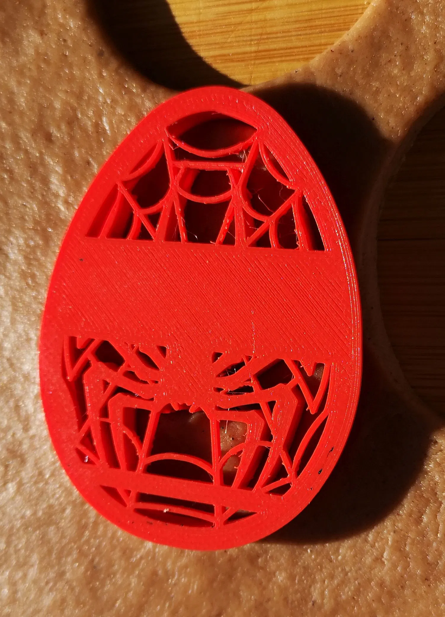Khuôn cắt bánh quy hình LOGO Spiderman. Cán bột dày 4-5mm để cắt. Có thể phóng to mẫu bằng PrusaSlicer nếu muốn bánh lớn hơn. In bằng PLA không cần support. Nhớ nhúng bột mì trước khi cắt để chống dính và đừng rửa bằng máy rửa chén.