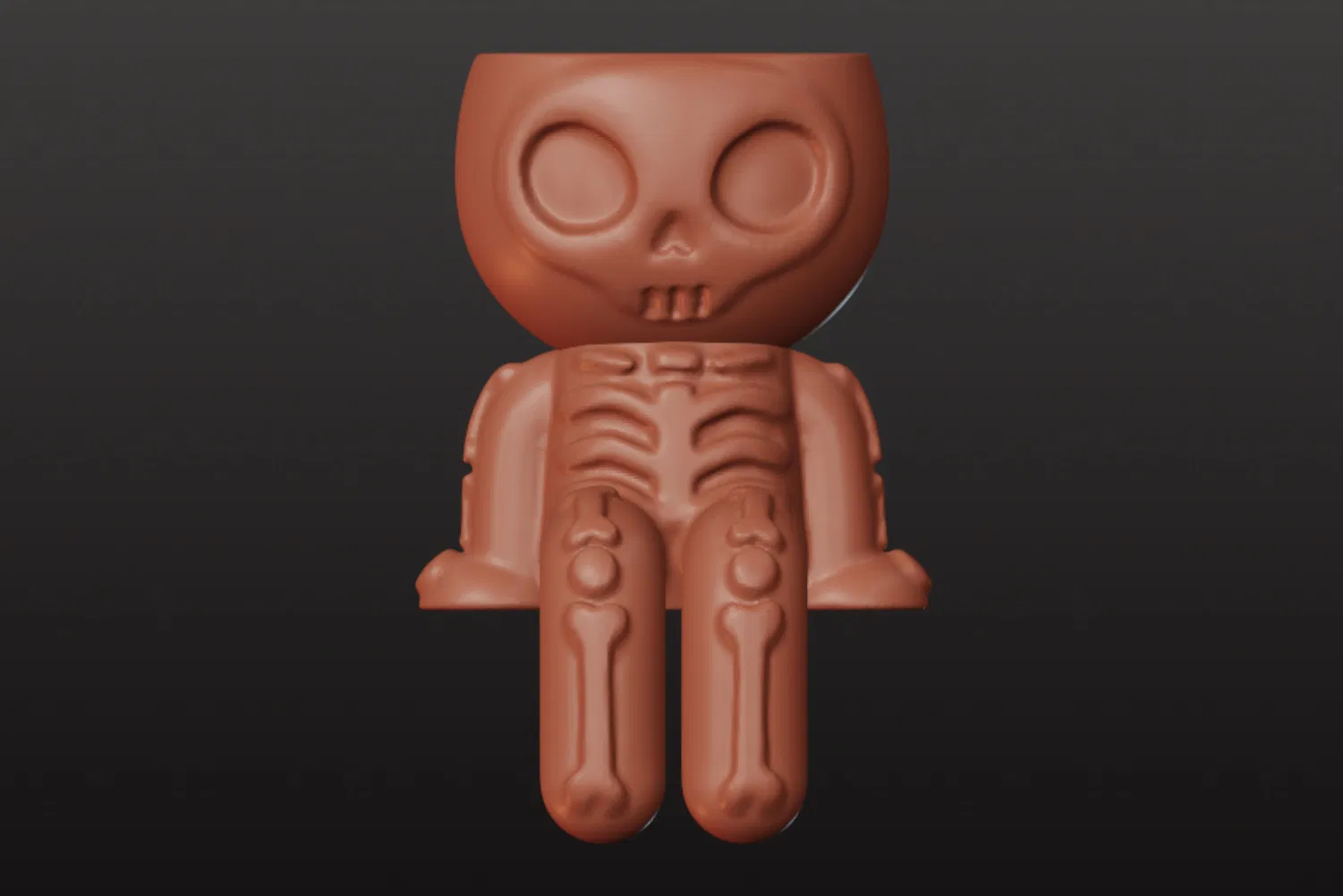Tui đã tạo ra ba chậu cây nhỏ theo chủ đề Halloween cho xương rồng và sen đá — một chú dơi nhỏ xinh, một bộ xương thư giãn, và một đầu bí ngô tinh nghịch, tất cả đều được thiết kế như đang ngồi. Mỗi chậu đều có nét cá tính riêng và được tạc hoàn toàn bởi tui bằng Nomad Sculpt.