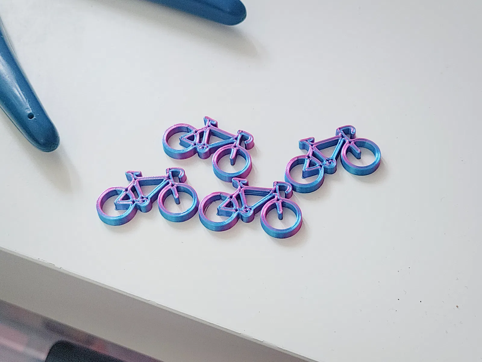 Móc khóa xe đạp / xe máy nhỏ xinh, quà tặng ý nghĩa cho người yêu xe hoặc bản in demo nhanh cho người mới. In cực nhanh, dễ dàng, tiêu thụ hết filament cuối cuộn. Có link tham khảo cho fixie/xe máy và tùy chỉnh kích thước.