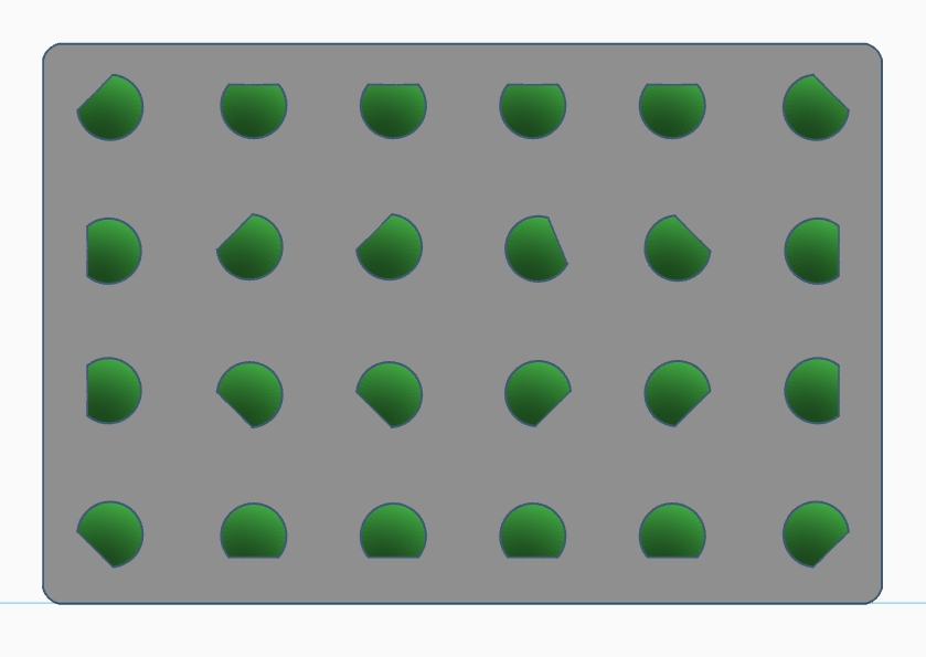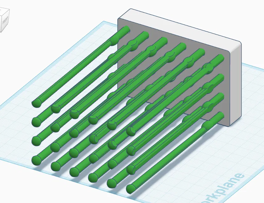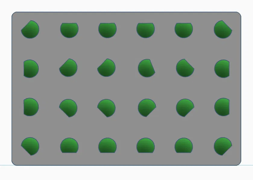 Bạn cần in 24 cái lược bằng chất liệu PETG hoặc ABS với 100% infill. PETG cho kết quả tốt nhất với tôi. Khi gắn các cái lược vào đầu, hãy hướng "phần phình" phía trên của lược về phía trung tâm của đầu lược. Hình ảnh ví dụ về hướng đặt lược tối ưu được cung cấp bên dưới. Có thể cần dùng kềm để gắn các cái lược vào.