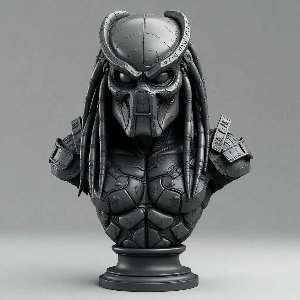Tượng bán thân Predator chân thực, tái hiện vẻ ngoài đáng sợ của thợ săn ngoài hành tinh với mặt nạ biểu tượng và chi tiết dữ tợn. Lý tưởng làm đồ sưu tầm, vật trưng bày, quà tặng cho fan sci-fi và người yêu điện ảnh. Bản in sắc nét, phù hợp với thiết kế 3D hiện đại.
