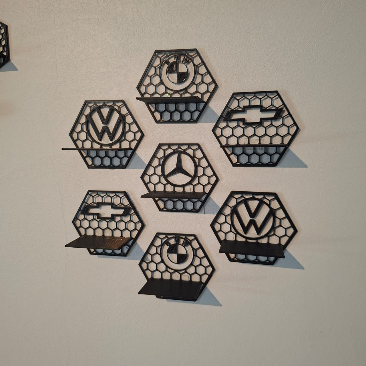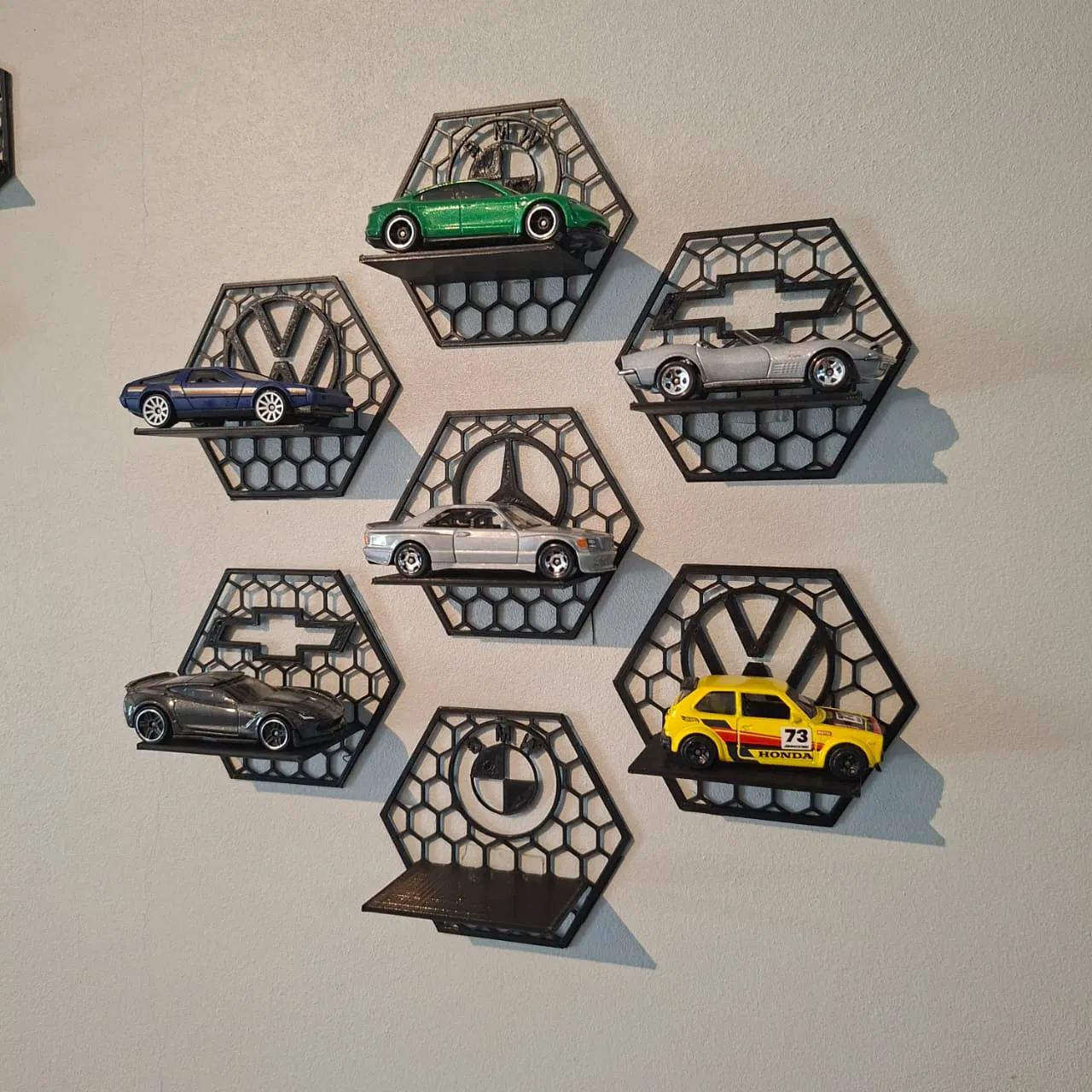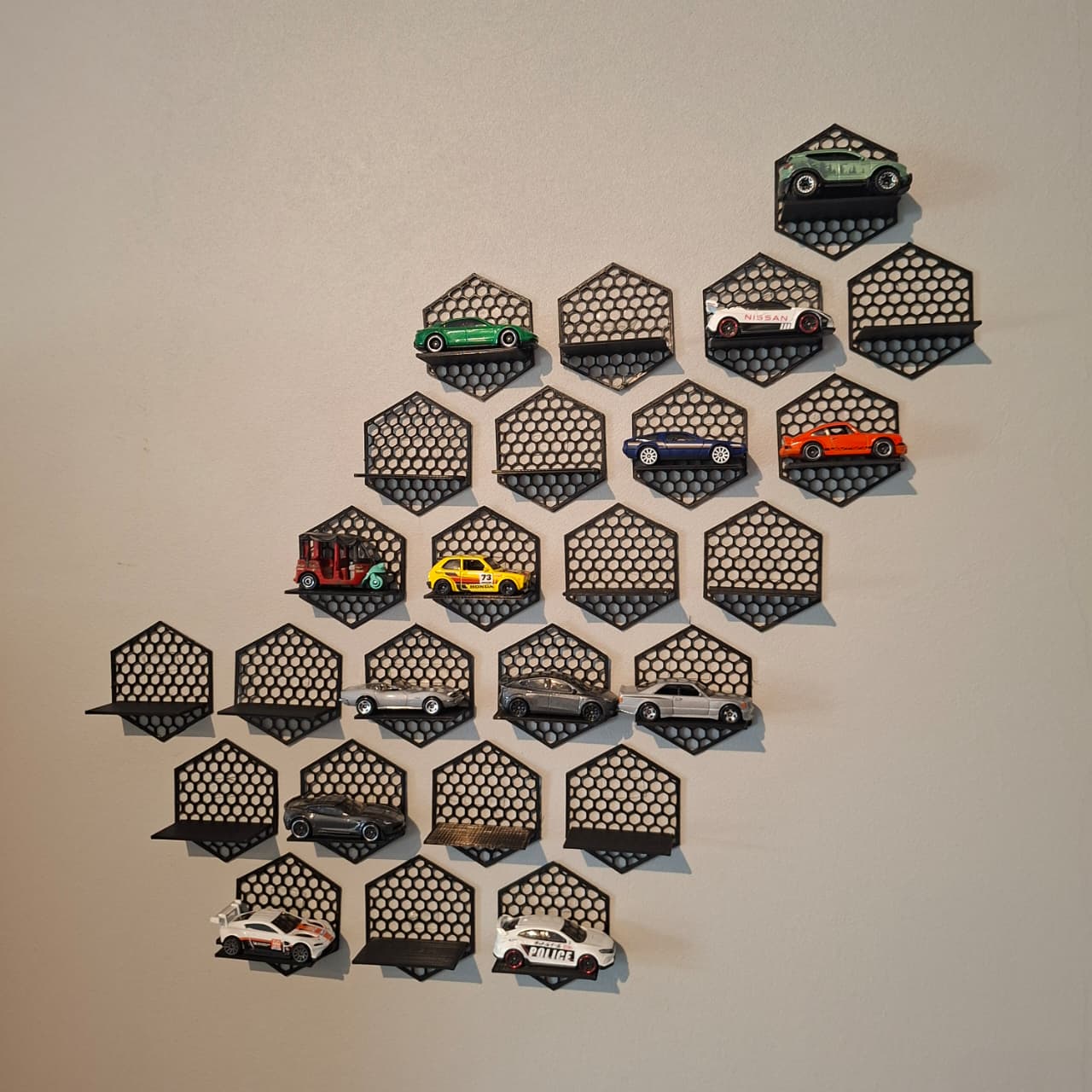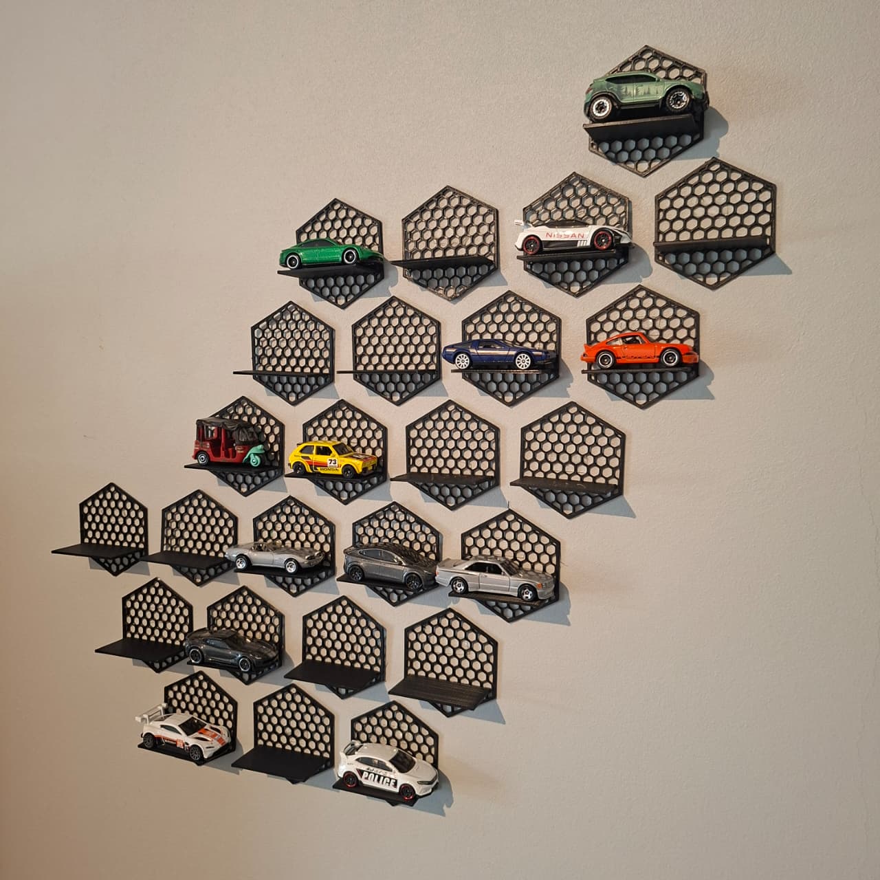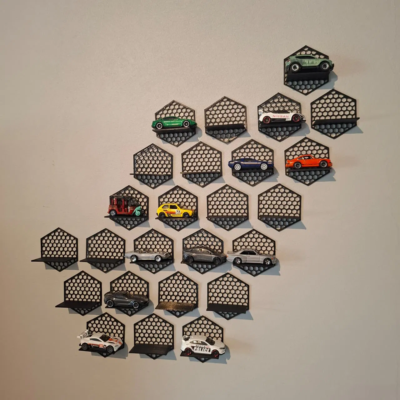 Trưng bày mô hình thu nhỏ 1:64 của bạn với bộ màn hình lục giác dạng module này. Có các phiên bản biểu tượng xe hơi hoặc thiết kế tối giản, hoàn hảo để tạo bố cục độc đáo trên tường.