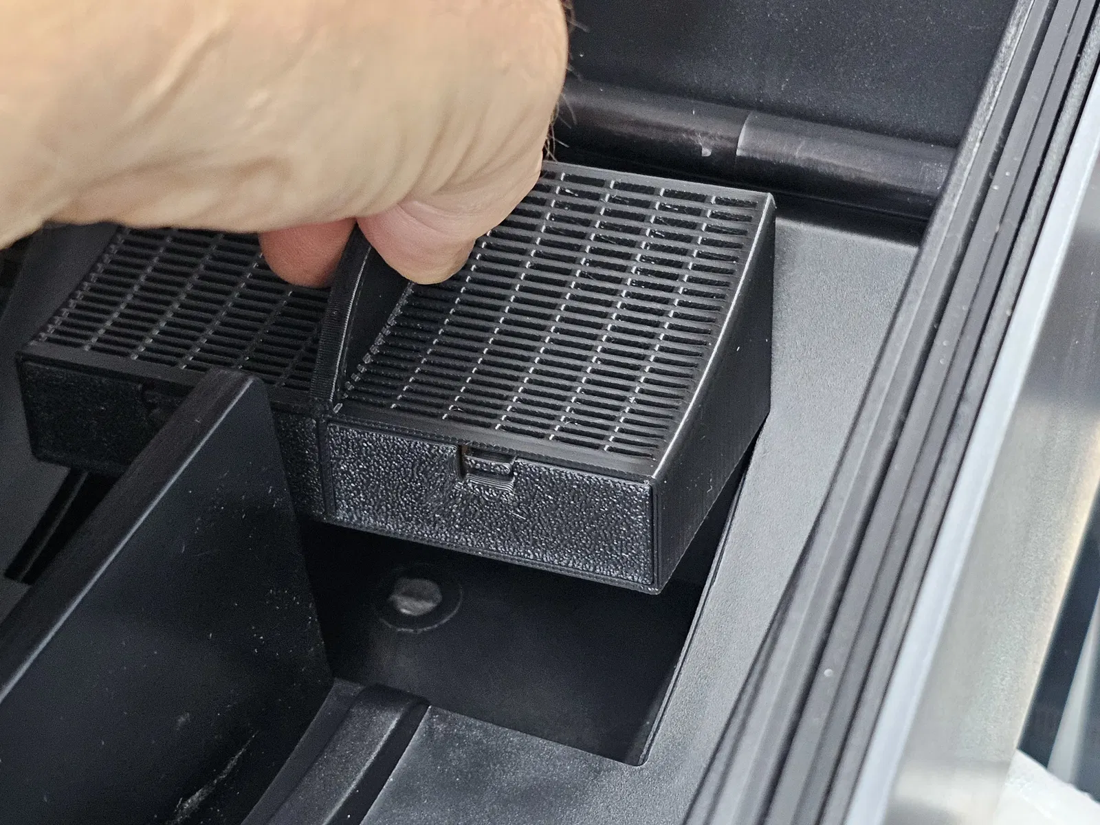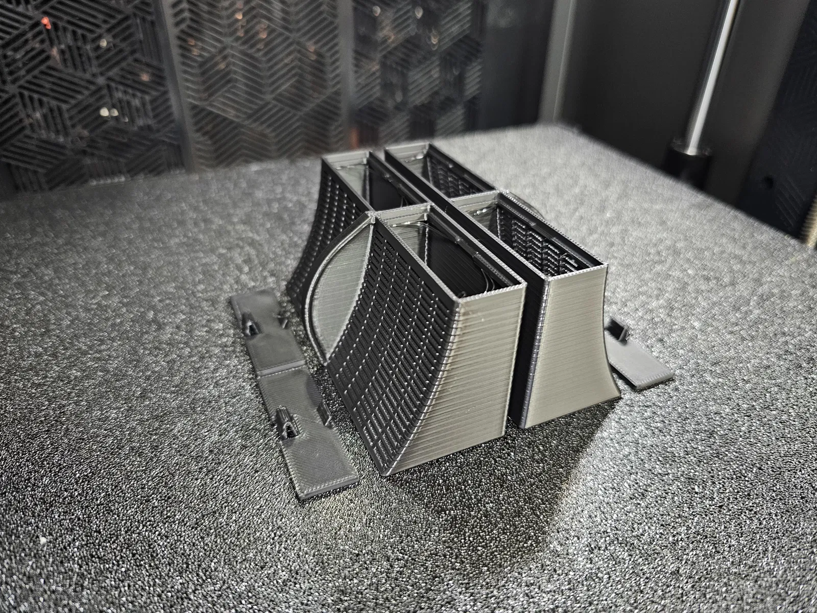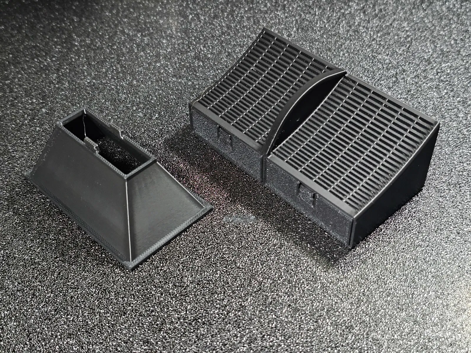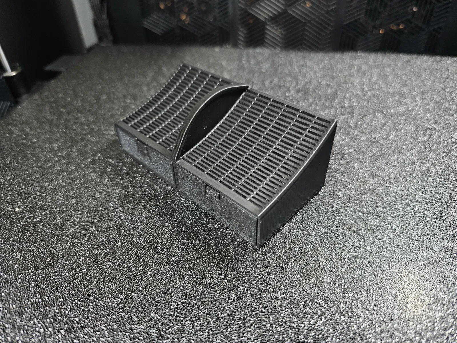 Muốn có cái gì đó mà tôi có thể đổ đầy và làm khô trên bàn làm việc, dễ dàng đặt và tháo ra khỏi CFS. Cũng dễ in mà không cần support. Lớp 0.2, đầu phun 0.4, phần mỏng nên 3 lớp tường và 6 lớp trên/dưới gần như làm nó đặc. Có một phần giống lò xo nên tôi khuyên dùng PETG, nhưng cái gì cũng được. ABS hoặc ASA cho phép bạn đặt hộp đã làm khô vào máy hút ẩm của mình.
