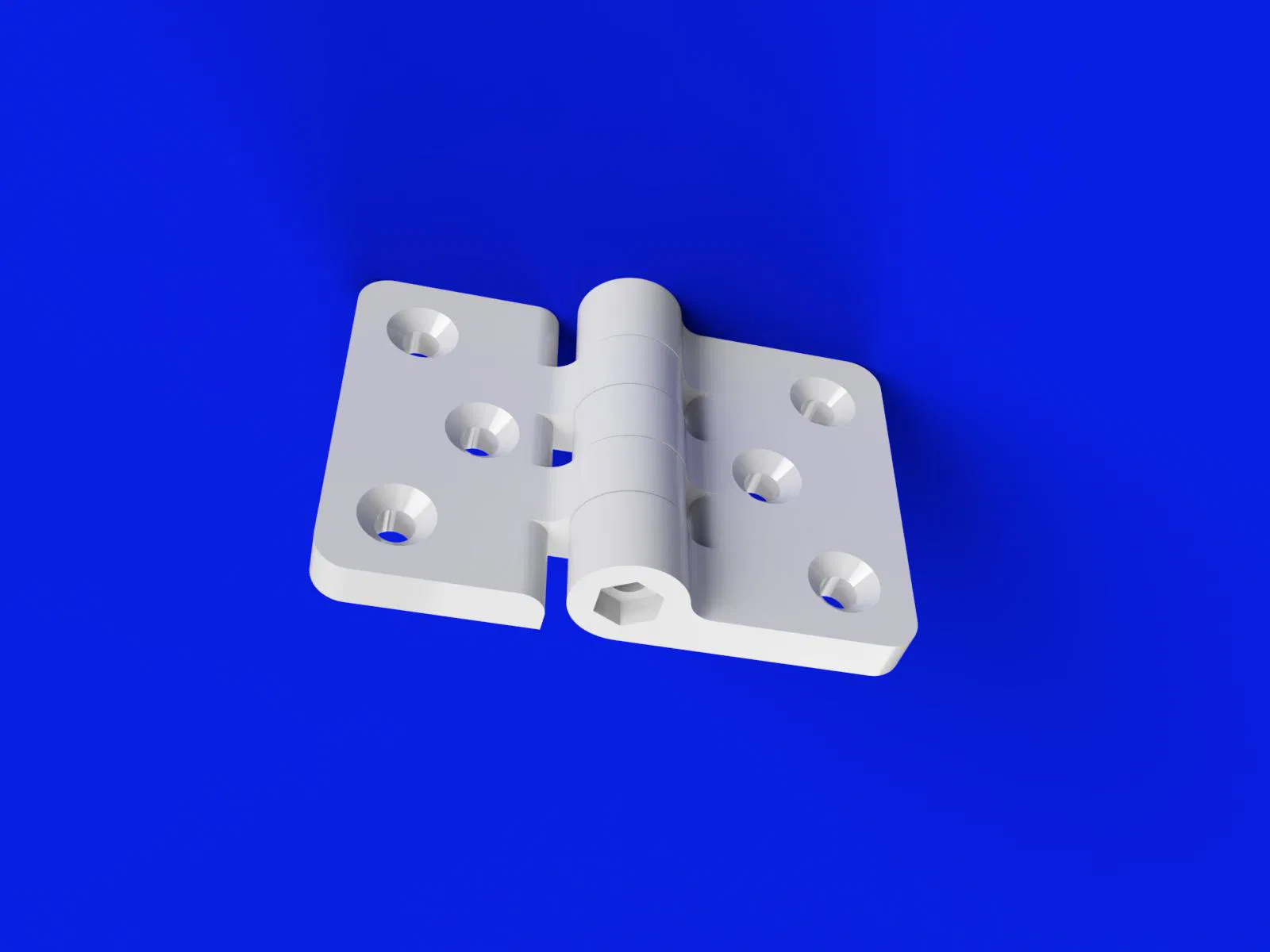 Bản lề chắc chắn với kích thước 80x55x16(7) Dài-Rộng-Cao, sử dụng ốc lục giác M5x50 và đai ốc làm trục. Chất liệu in khuyến nghị là PLA hoặc PETG với độ đặc 100% Infill để đảm bảo độ bền.
