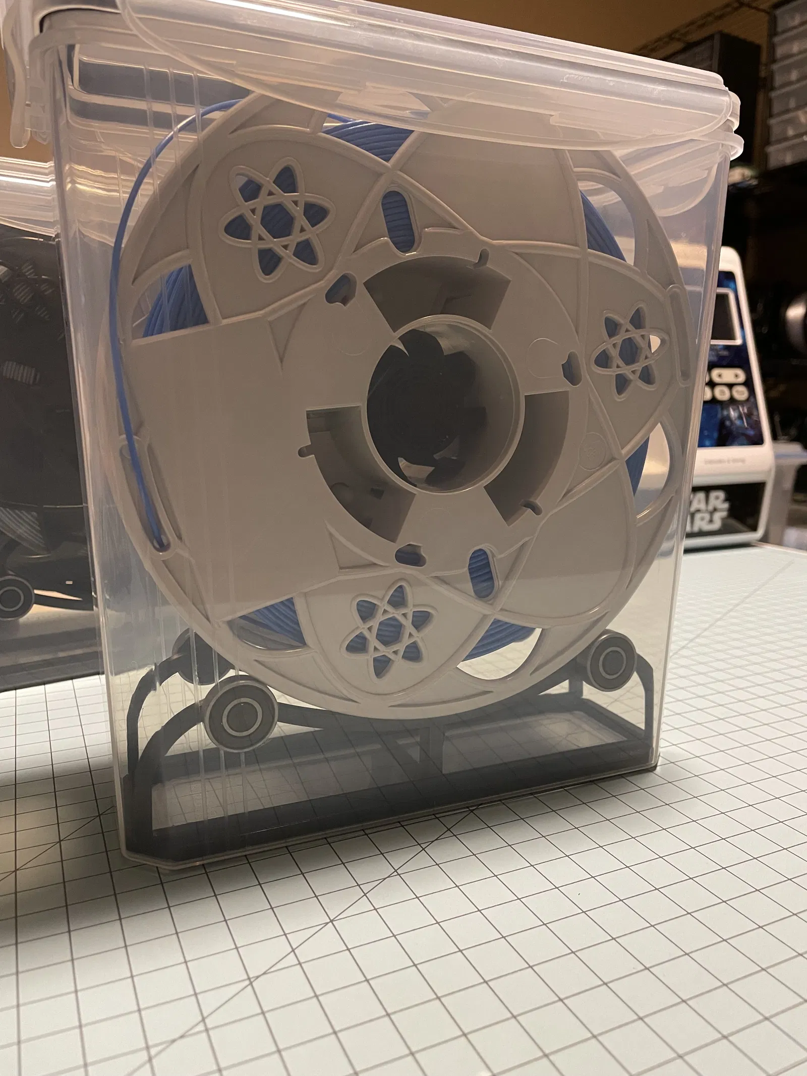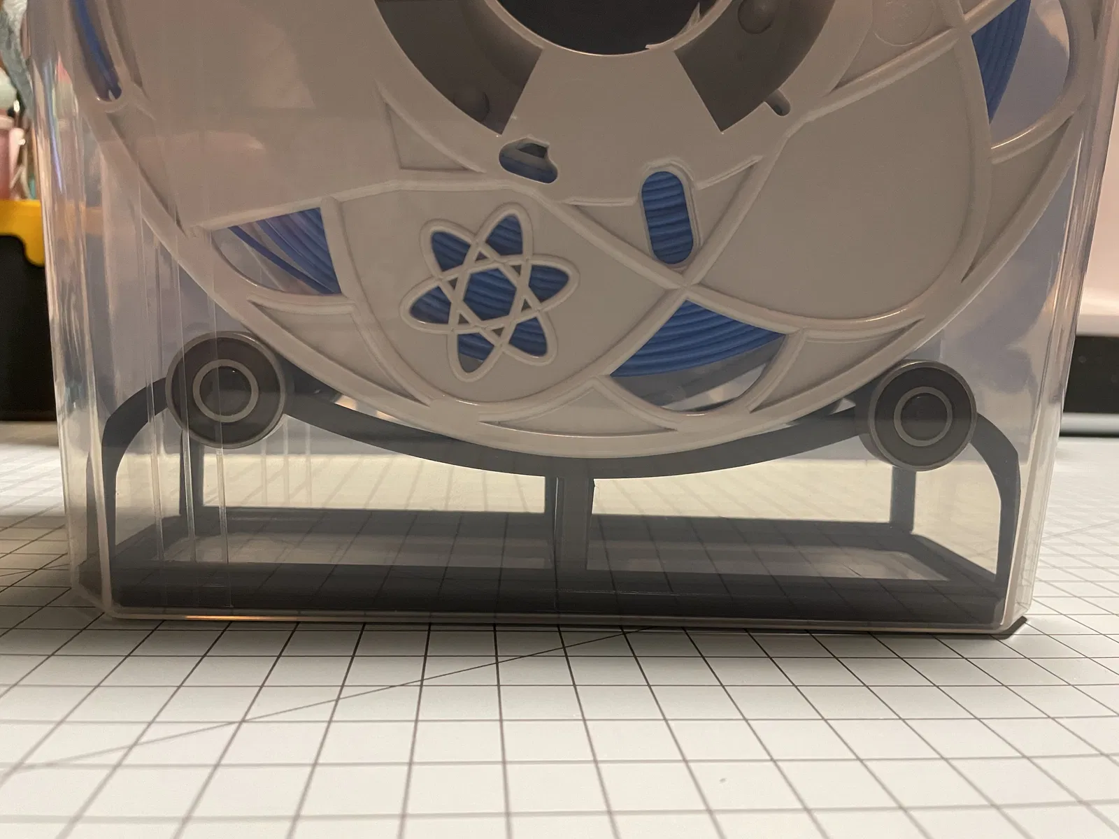 Tôi có mua về thử và đúng là nó vừa in cho đa số loại cuộn, nhưng mà cái loại filament Atomic Filament tôi hay xài á, cái cuộn của nó lại dày hơn mấy hiệu khác, nên nó bị cạ vô đáy (phần thuôn) của cái hộp.