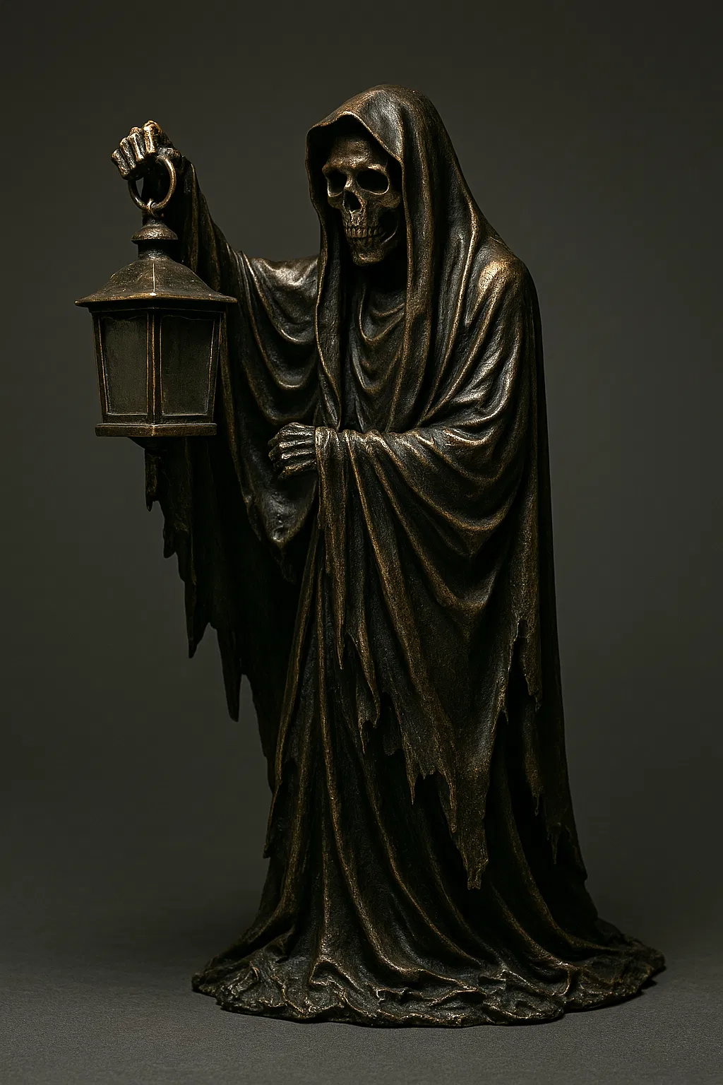 Tượng thần chết bí ẩn, được thiết kế để thể hiện vẻ đẹp ám ảnh và sức mạnh tĩnh lặng của sự tồn vong. Tác phẩm này kết hợp hình dáng duyên dáng với biểu tượng đen tối, tạo ra một bầu không khí bí ẩn, suy tư và chiều sâu nghệ thuật. Các đường nét uyển chuyển và chi tiết tinh tế gợi lên cảm giác bình yên trong bóng tối — khiến nó vừa rùng rợn vừa quyến rũ.