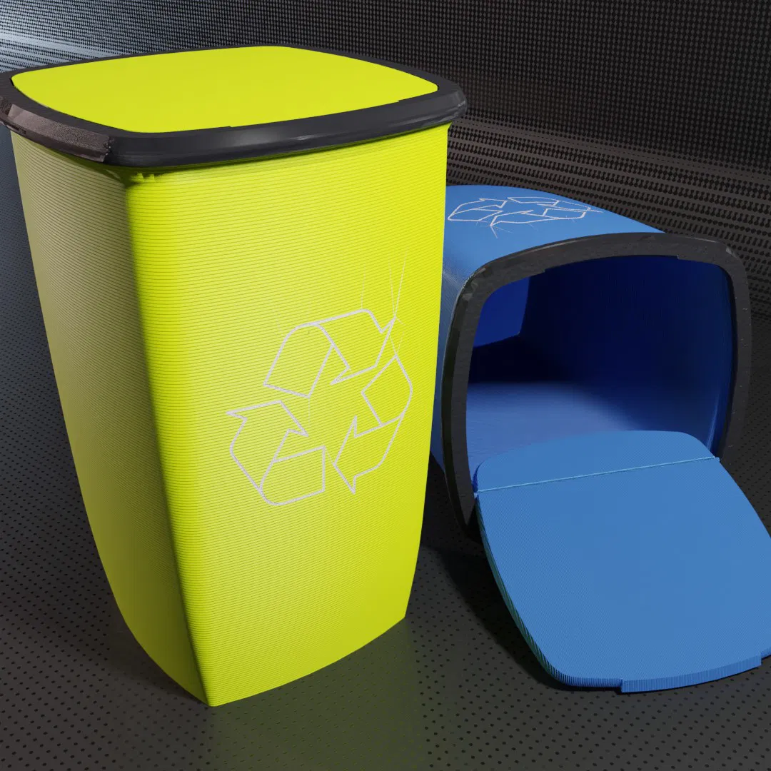 Một cái thùng rác siêu nhanh để in, bạn có thể đặt trên bàn làm việc hoặc bất cứ đâu. Có thể in nhiều màu để phân loại rác, thân bình in chế độ xoắn ốc, không cần support cho nắp và vòng.