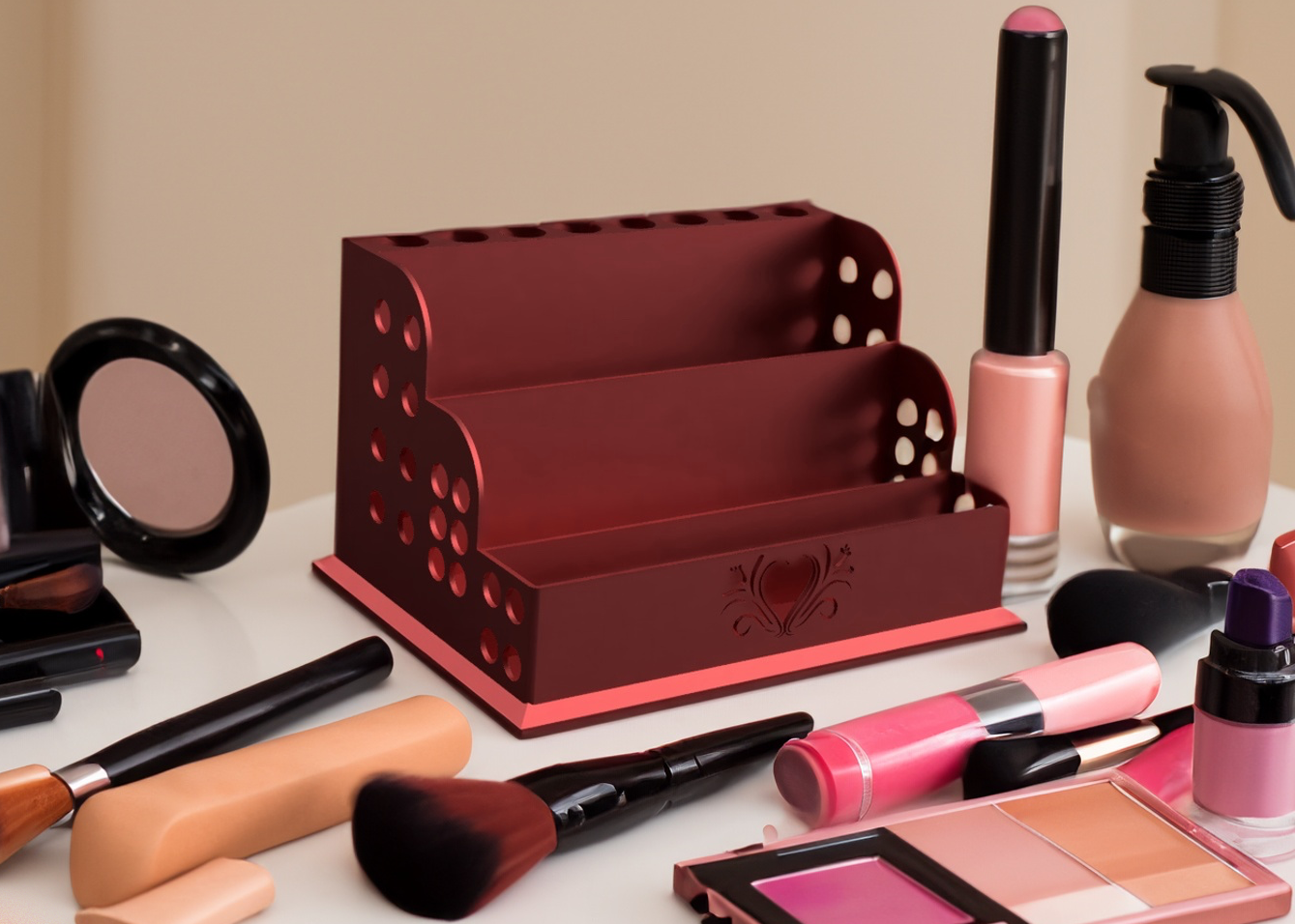 Món quà tuyệt vời cho bất kỳ ai mê mỹ phẩm, chiếc hộp thanh lịch này được thiết kế để giữ cho tất cả mỹ phẩm và dụng cụ làm đẹp của bạn được sắp xếp gọn gàng. Vẻ ngoài thời thượng của nó còn làm tăng thêm nét sang trọng cho bất kỳ bàn trang điểm hay khu vực thay đồ nào.