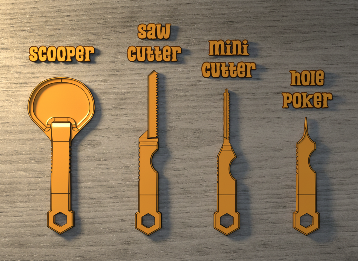 Bộ dụng cụ khắc bí ngô đơn giản, dễ in, in nhanh không cần support. Tuyệt vời để cứu nguy nếu bạn quên mua đồ khắc bí ngô. Có thể scale tùy ý và in bằng PLA. Nhớ là đồ in FDM không an toàn cho thực phẩm nha!