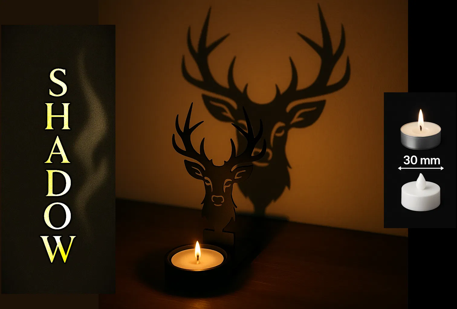 Mô hình in 3D này là một món đồ trang trí, khi đặt gần nguồn sáng như nến hoặc đèn sẽ tạo ra bóng hình con hươu tuyệt đẹp.
