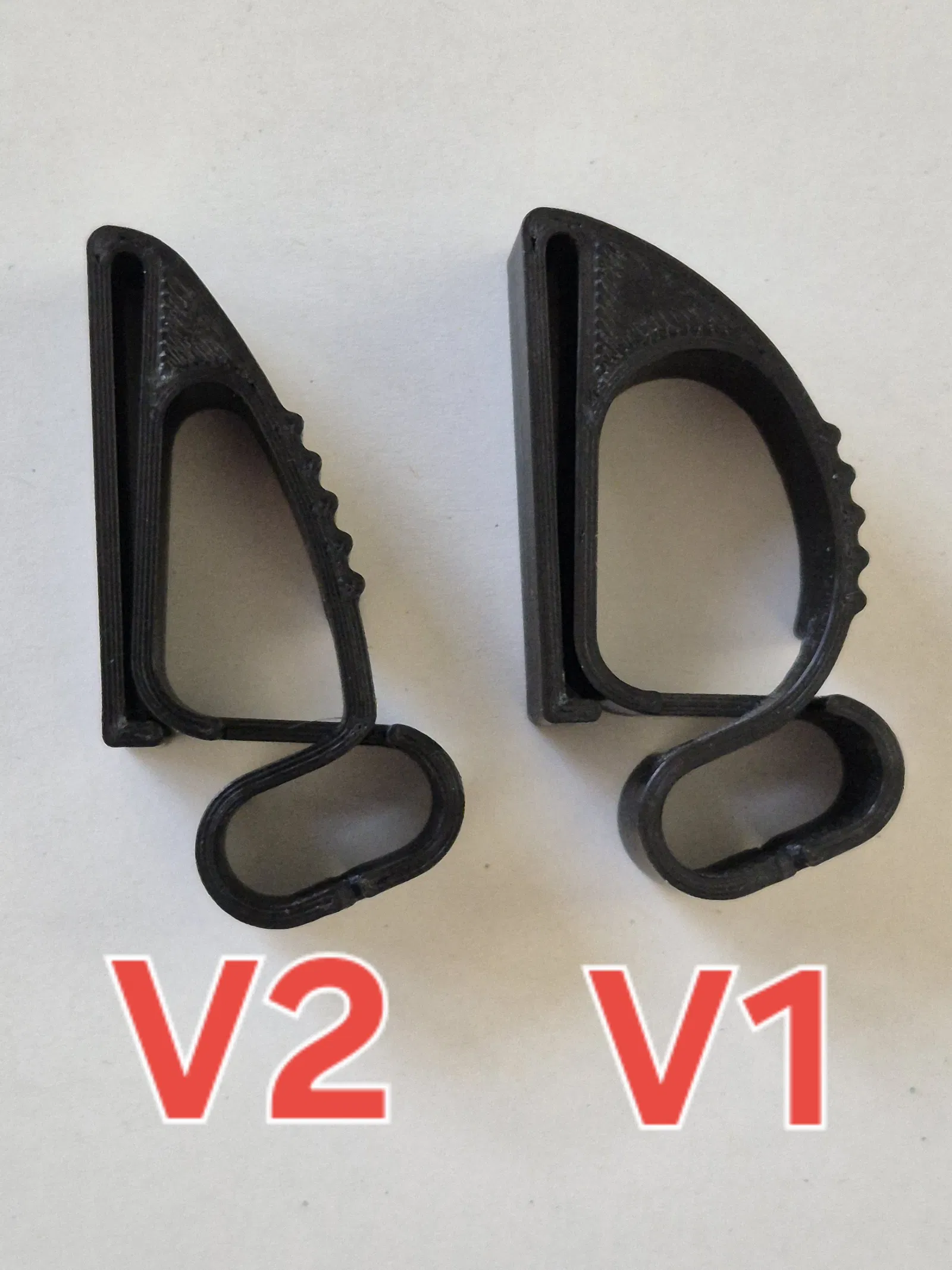Tôi đã thêm phiên bản V3. Với chiếc kẹp này, một bên của kẹp thấp hơn một chút, cho phép bạn kẹp găng tay chỉ bằng một tay. Hơn nữa, bạn có thể lấy găng tay ra khỏi kẹp bằng một lực kéo mạnh. Kẹp thắt lưng cũng có một móc nhỏ để cố định tốt hơn vào thắt lưng của bạn.