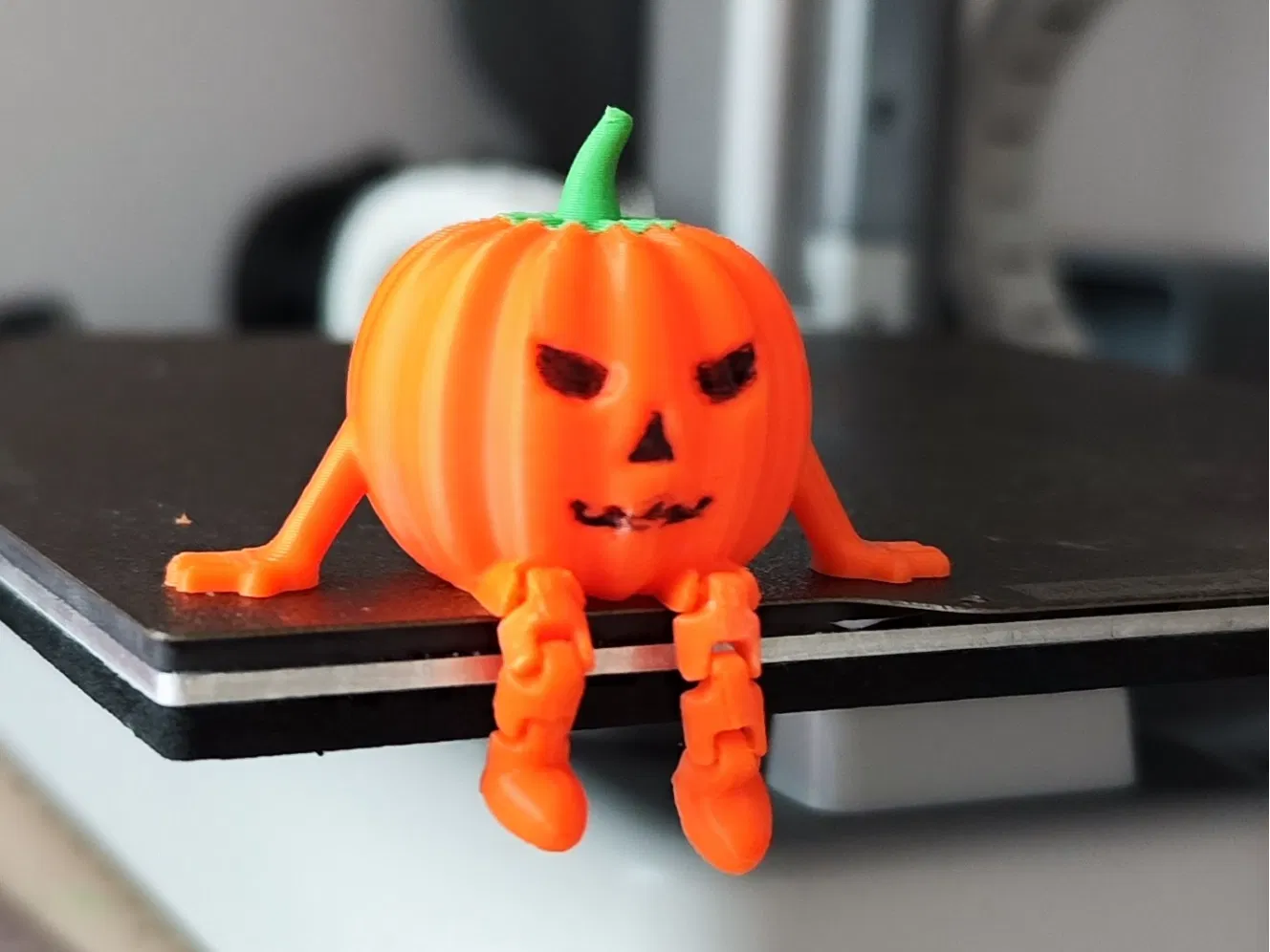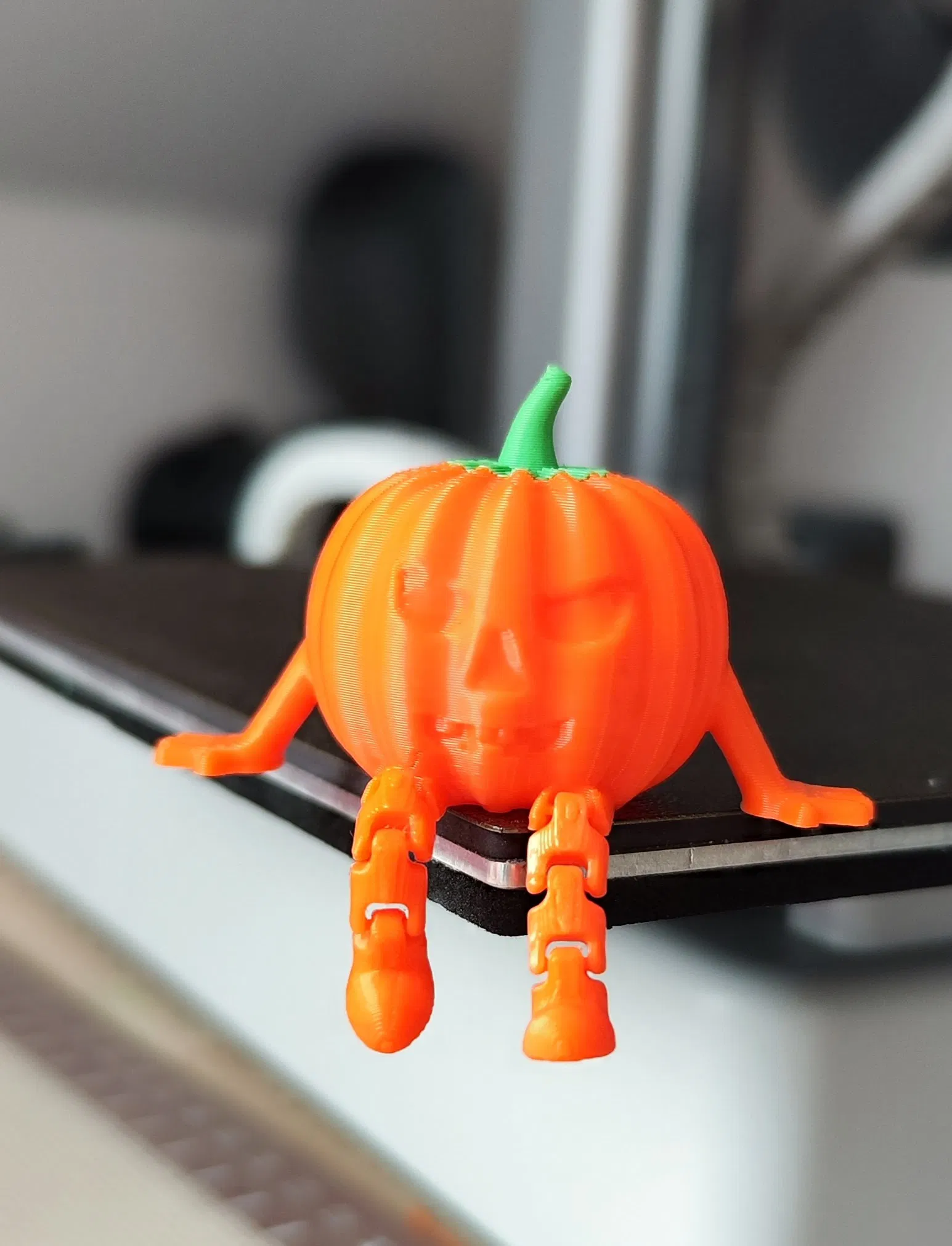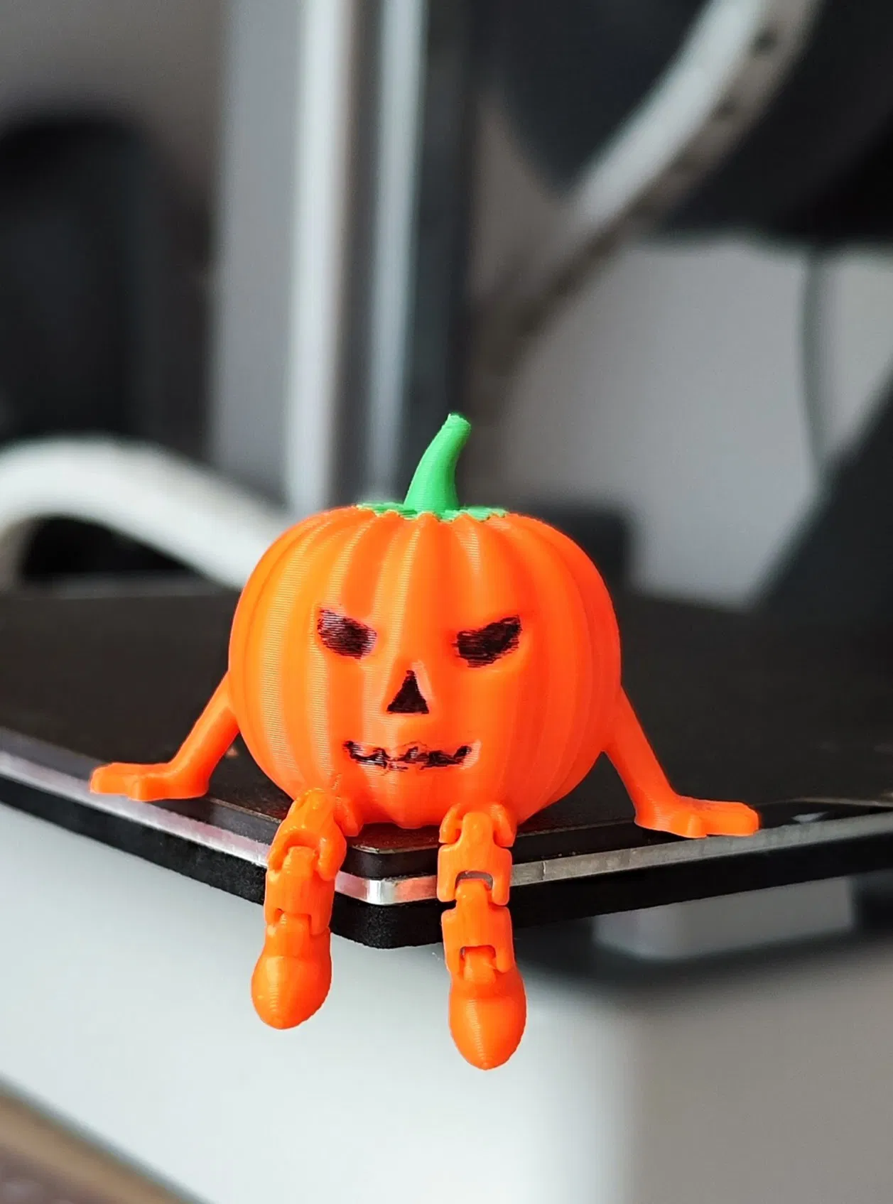 Trái bí ngô Halloween khớp nối, món đồ trang trí bàn làm việc tuyệt vời. Mô hình có 2 màu cam và xanh lá giúp tiết kiệm vật liệu in. Bạn có thể dùng bút tô màu cho mắt, mũi, miệng tùy thích.