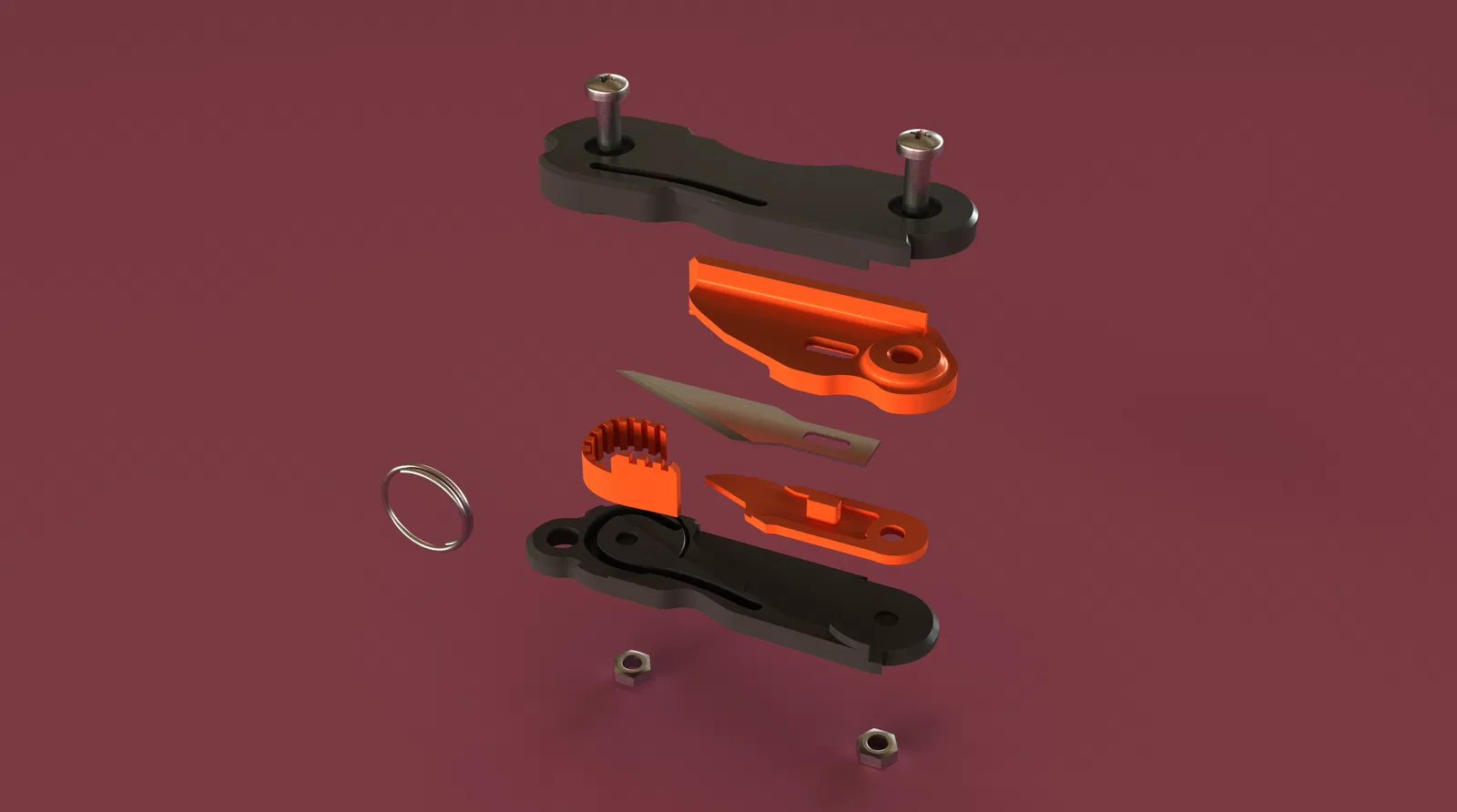 Dao Gập Mini v3, thiết kế lớn hơn v2 cho đầu phun thông thường đến lớn. Có chốt trượt an toàn, sử dụng ốc M3x8, không cần keo. Phiên bản nâng cấp cho các anh em đam mê cắt gọt, sửa chữa, EDC.