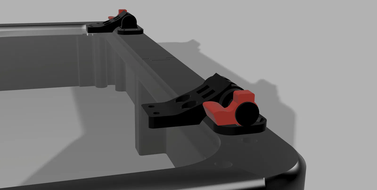 Tui không thích cái nắp bị lỏng lẻo, nên tui tự làm cái bản lề có chặn và chặn thông gió này để in bằng PLA. In được nguyên khối.